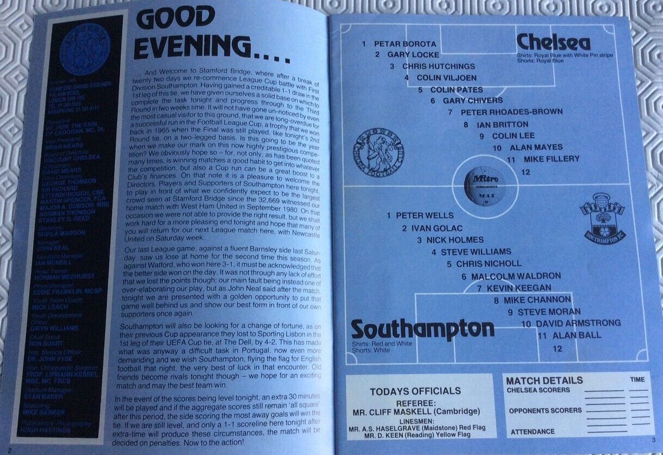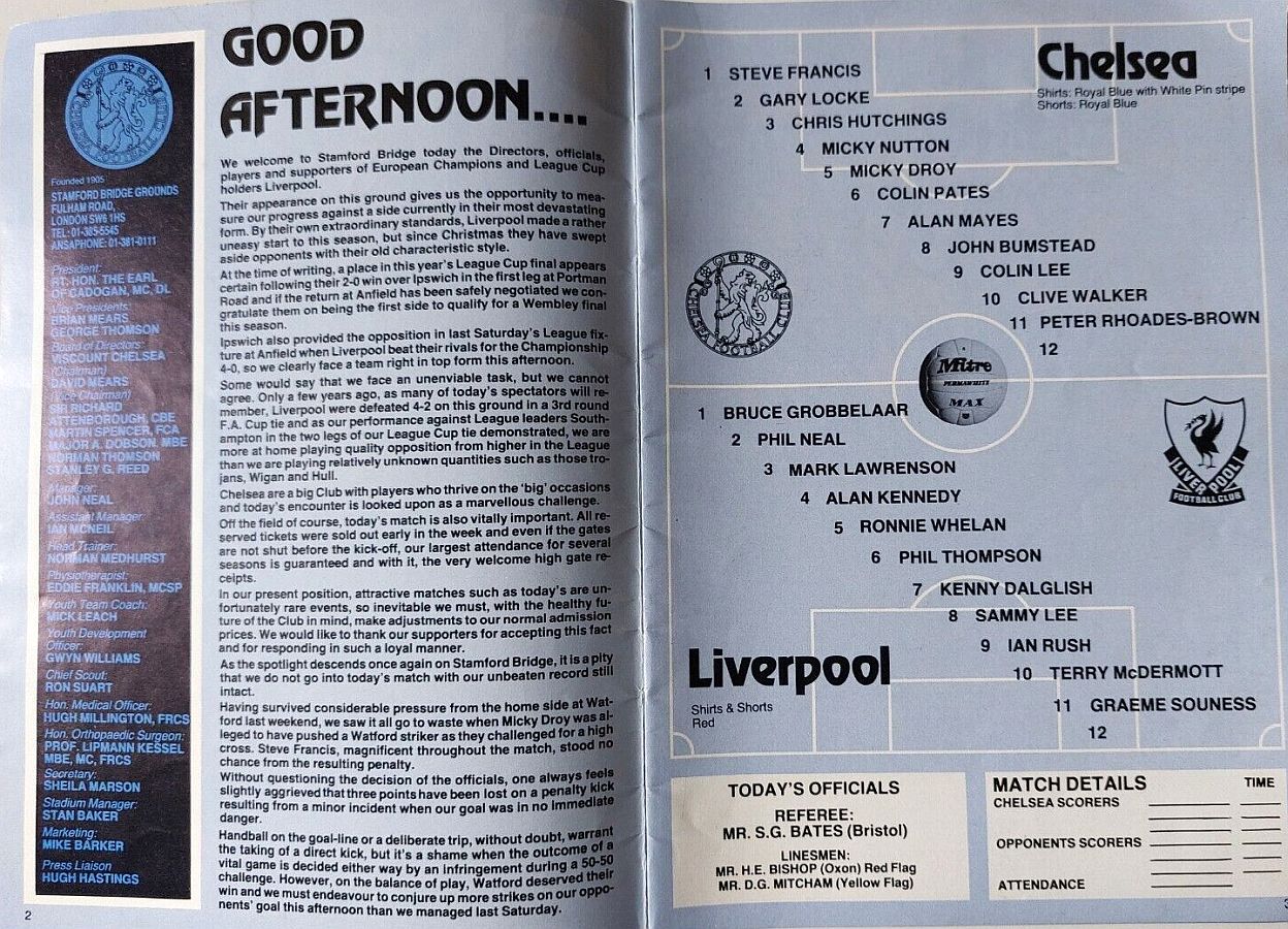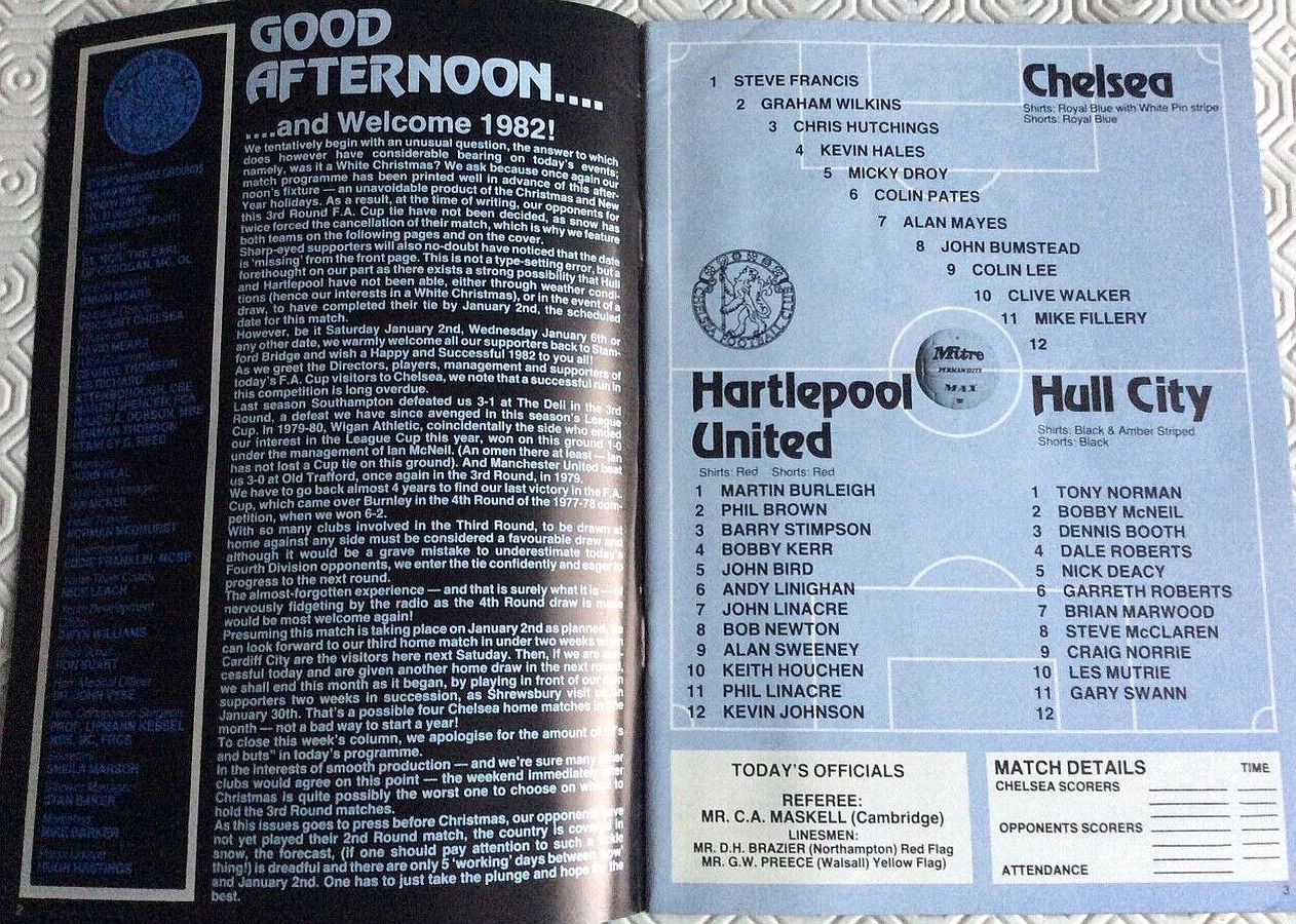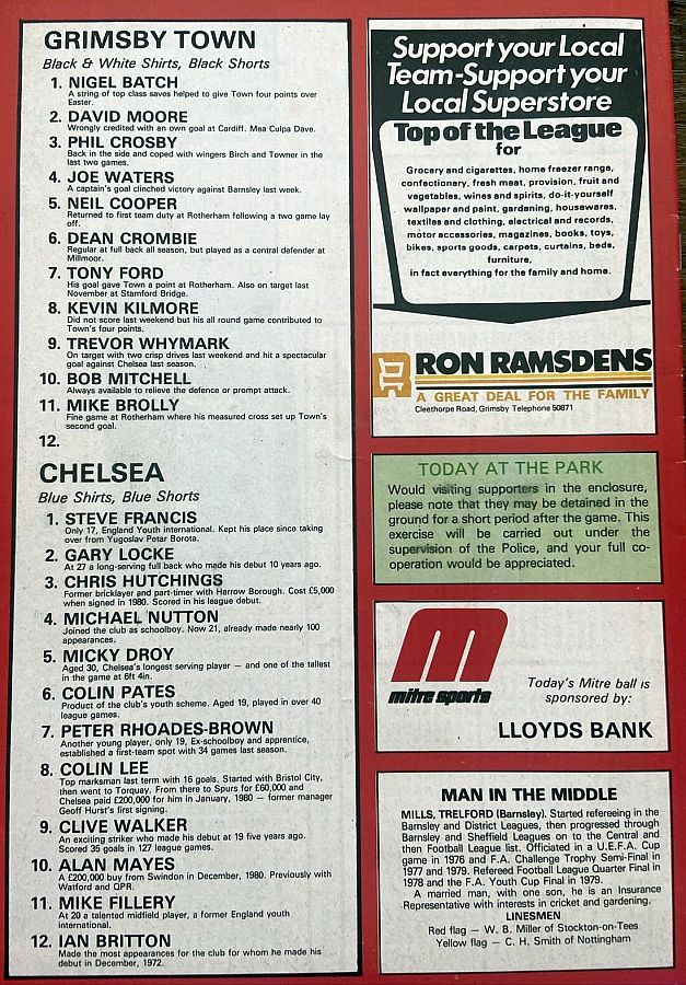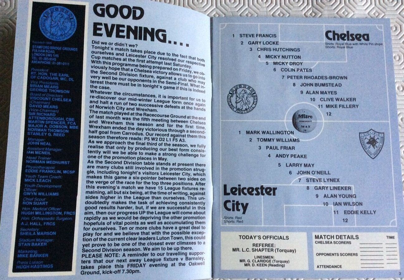 1 Steve Francis, 2 Gary Locke, 3 Chris Hutchings, 4 Colin Pates, 5 Micky Droy, 6 Gary Chivers, 7 Paul Canoville, 8 Clive Walker (12 Mike Nutton), 9 Colin Lee, 10 Alan Mayes, 11 Mike Fillery |