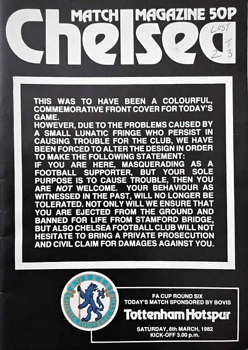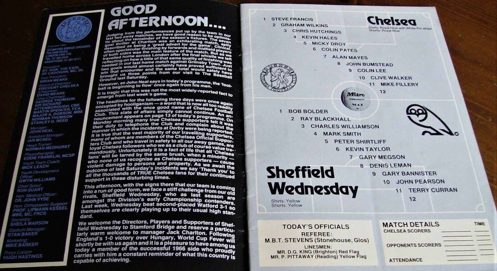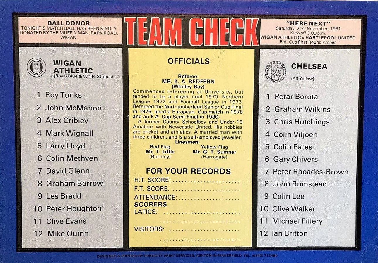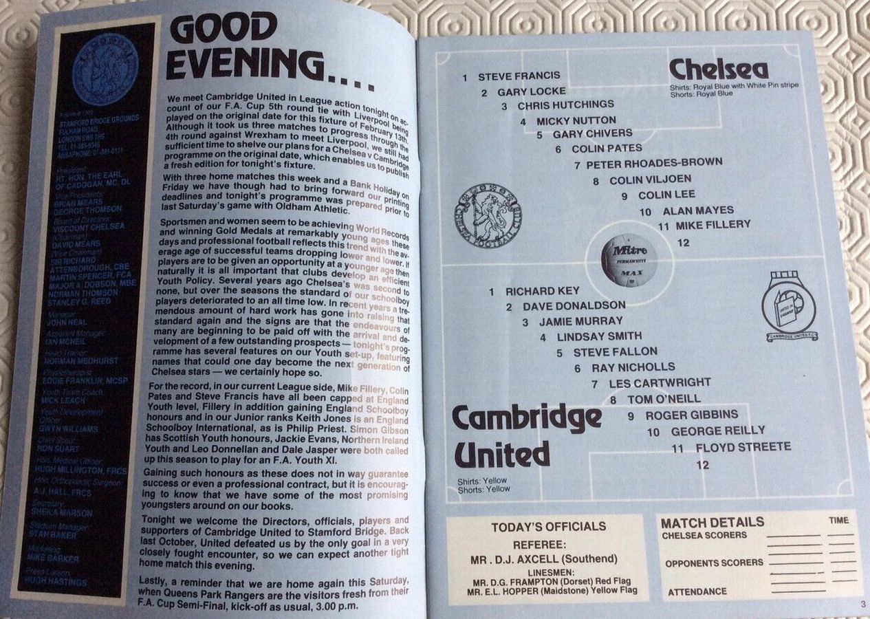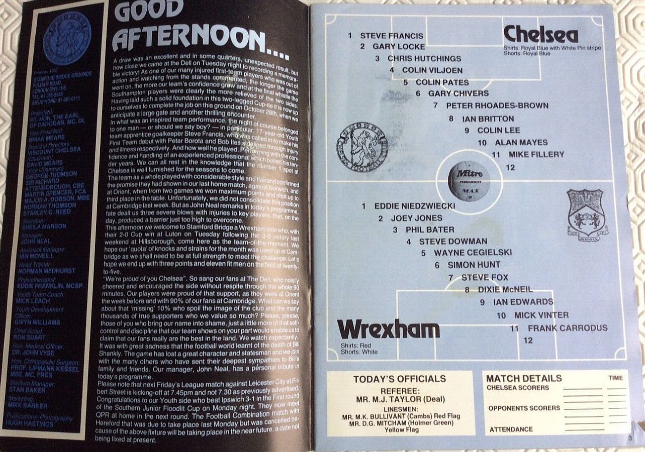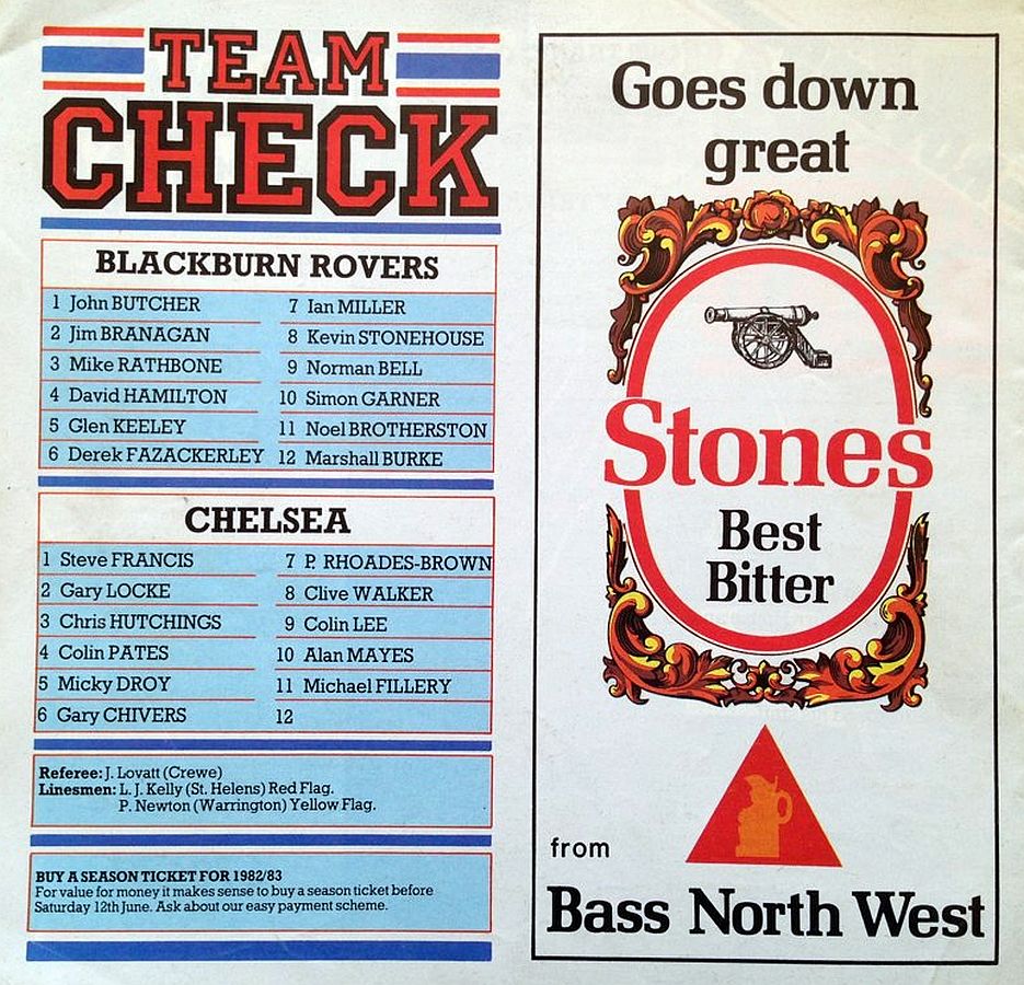 1 Steve Francis, 2 Gary Locke, 3 Chris Hutchings, 4 Colin Pates, 5 Micky Droy, 6 Gary Chivers, 7 Paul Canoville, 8 Clive Walker (12 Mike Nutton), 9 Colin Lee, 10 Alan Mayes, 11 Mike Fillery |