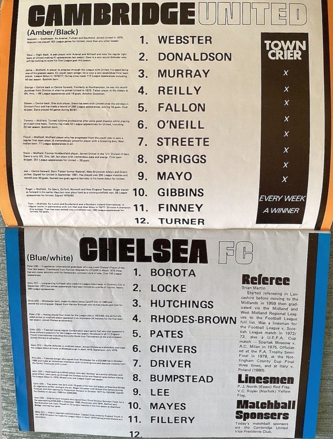 1 Petar Borota, 2 Gary Locke, 3 Dennis Rofe, 4 Colin Viljoen, 5 Colin Pates (12 Phil Driver 68), 6 Gary Chivers, 7 Clive Walker, 8 John Bumstead, 9 Colin Lee, 10 Alan Mayes, 11 Mike Fillery |