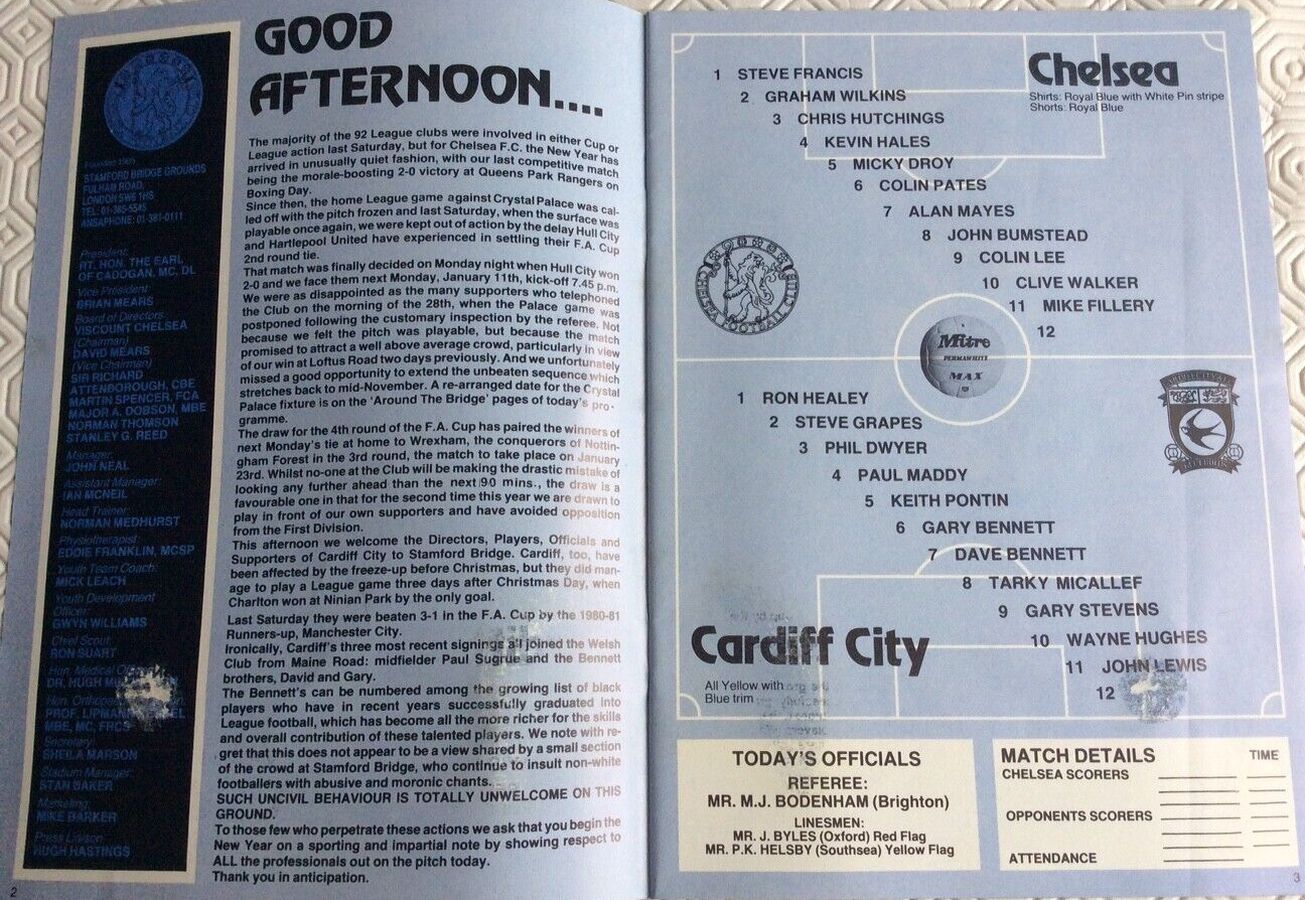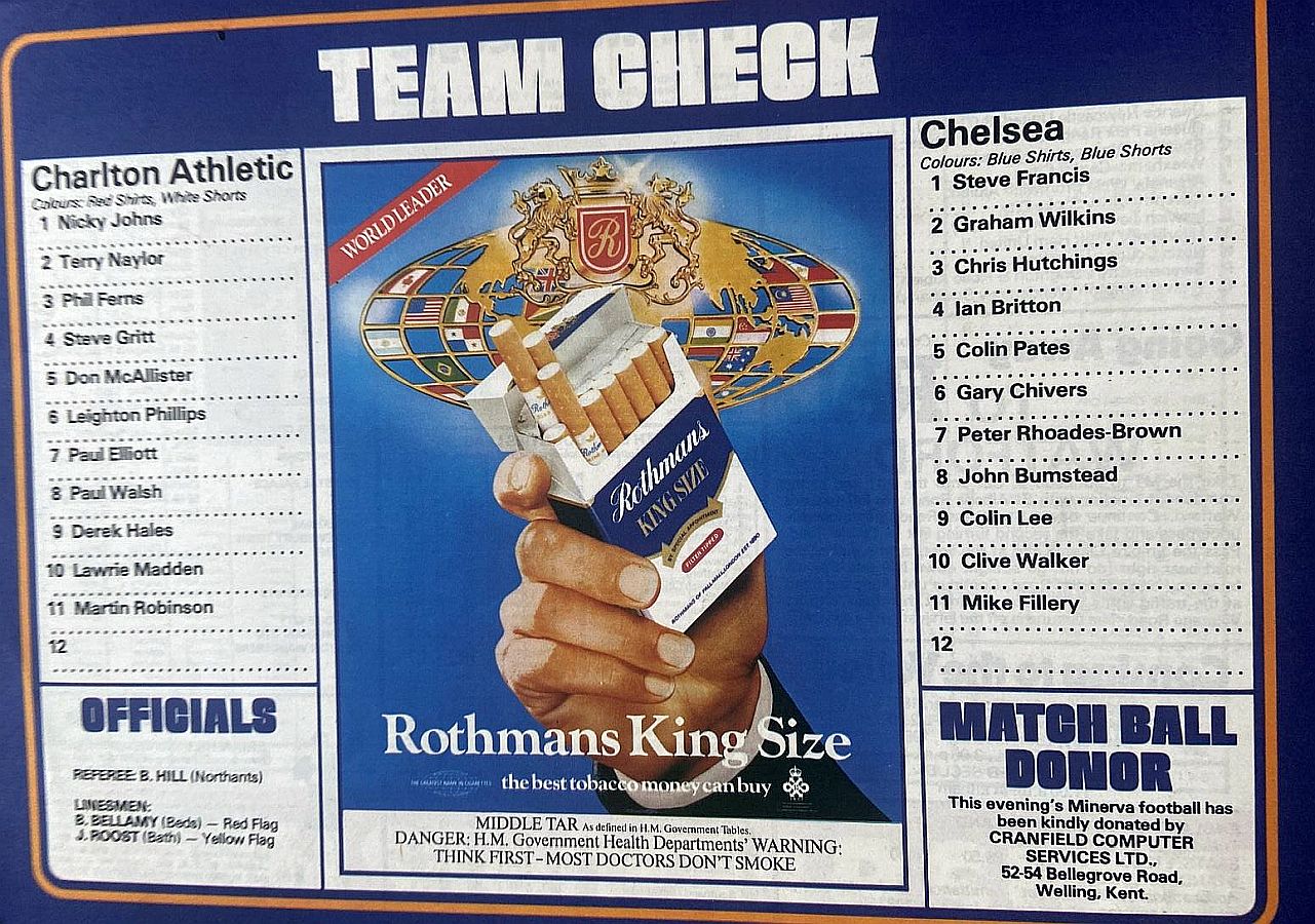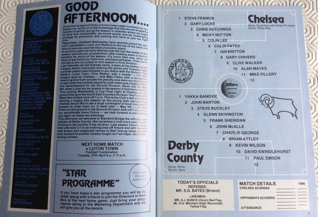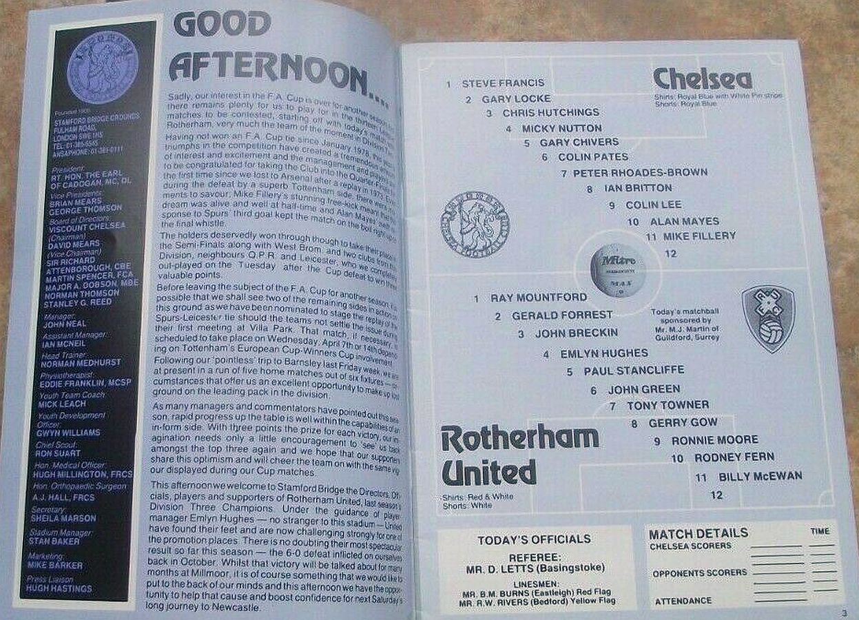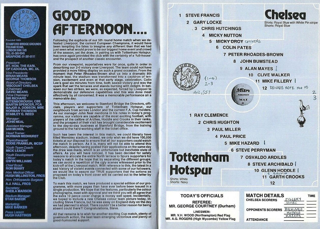 1 Steve Francis, 2 Gary Locke, 3 Chris Hutchings, 4 Colin Lee, 5 Micky Droy, 6 Colin Pates, 7 Peter Rhoades-Brown (12 Paul Canoville 75), 8 Gary Chivers, 9 Clive Walker, 10 Alan Mayes, 11 Mike Fillery |