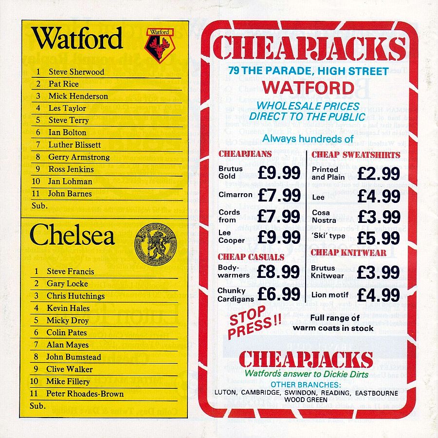 Steve Sherwood, Pat Rice, Kenny Jackett, Les Taylor, Steve Sims, Ian Bolton, Nigel Callaghan, Wilf Rostron, Gerry Armstrong, Ross Jenkins, John Barnes |