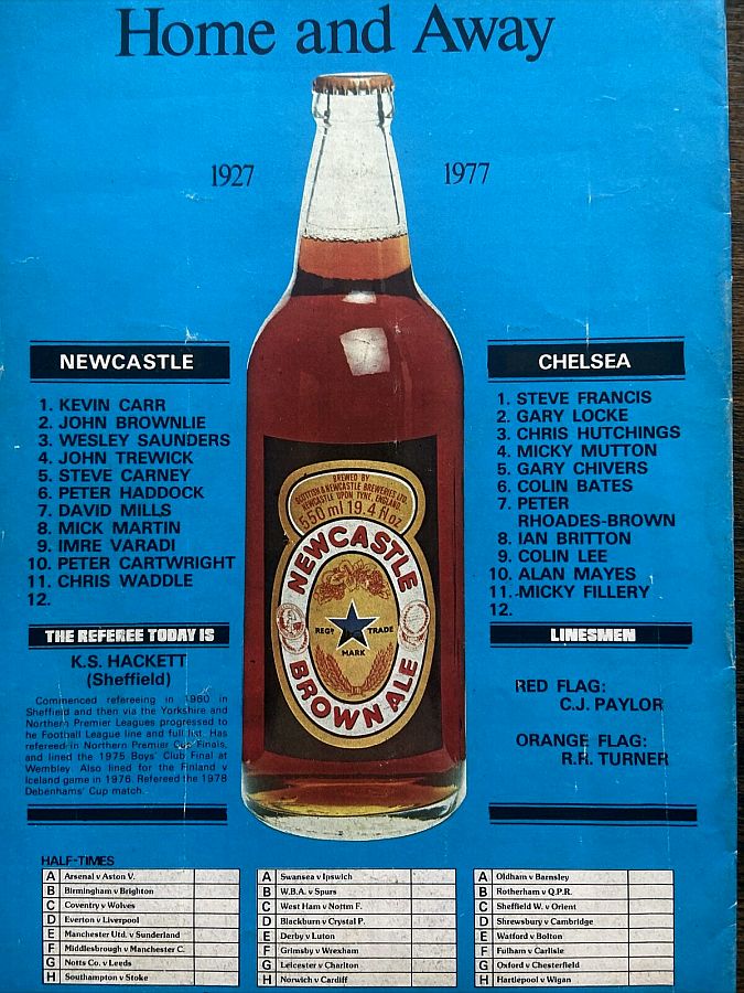 1 Steve Francis, 2 Gary Locke, 3 Chris Hutchings, 4 Mike Nutton (12 Dennis Rofe), 5 Micky Droy, 6 Colin Pates, 7 Ian Britton, 8 Gary Chivers, 9 Clive Walker, 10 Alan Mayes, 11 Colin Lee |