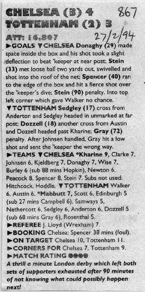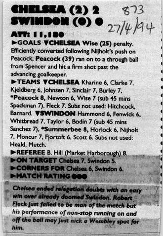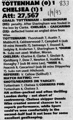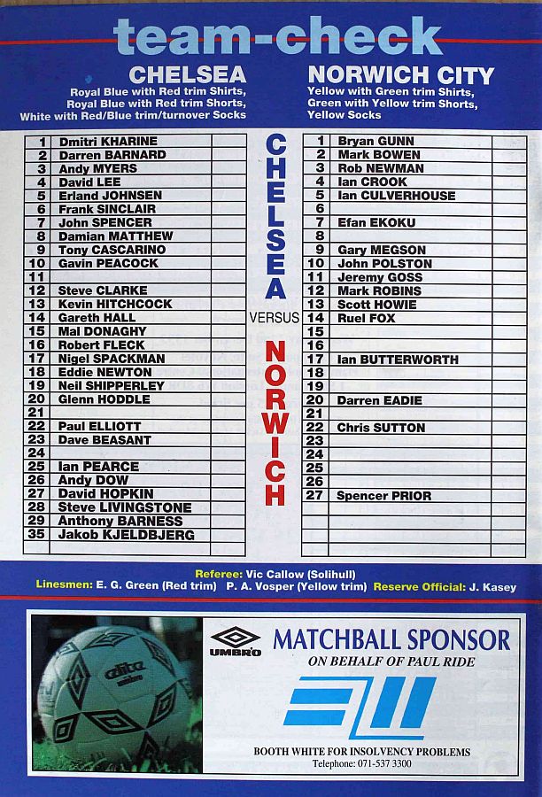1 Dmitri Kharine, 5 Erland Johnsen, 9 Tony Cascarino, 10 Gavin Peacock (27 David Hopkin 87), 11 Dennis Wise, 12 Steve Clarke, 15 Mal Donaghy, 16 Robert Fleck, 17 Nigel Spackman, 24 Craig Burley, 35 Jakob Kjeldbjerg |