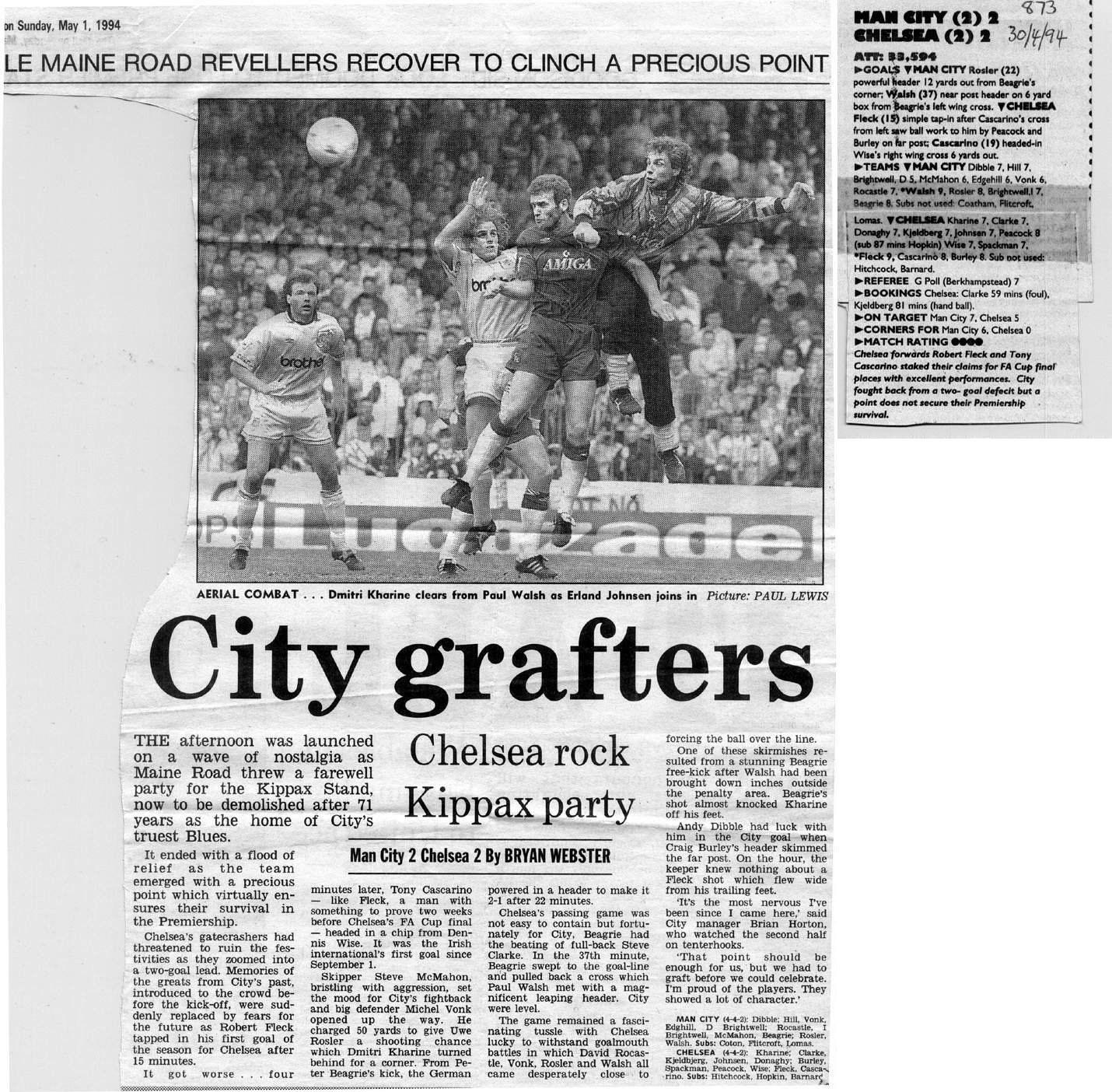Nicky Hammond, Terry Fenwick, Paul Bodin (Lawrie Sanchez 45), Luc Nijholt, Adrian Whitbread, Shaun Taylor, John Moncur, Nicky Summerbee, Jan-Aage Fjortoft, Keith Scott, Kevin Horlock |