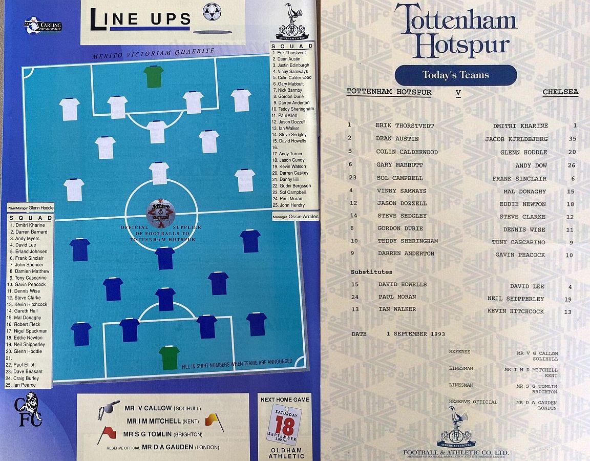 Erik Thorstvedt, Dean Austin, Sol Campbell (David Howells 59), Vinnie Samways, Colin Calderwood, Gary Mabbutt, Steve Sedgley, Gordon Durie, Jason Dozzell, Teddy Sheringham, Darren Anderton |