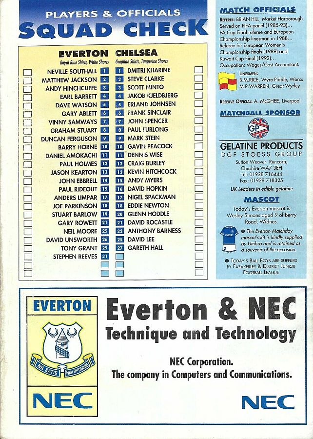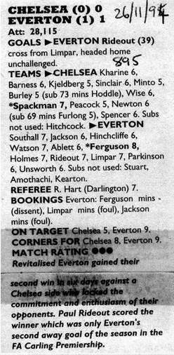 Neville Southall, Earl Barrett, David Watson, David Unsworth, Gary Ablett, Graham Stuart (Stuart Barlow 36), Barry Horne, Joe Parkinson, Andy Hinchcliffe, Paul Rideout, Daniel Amokachi |