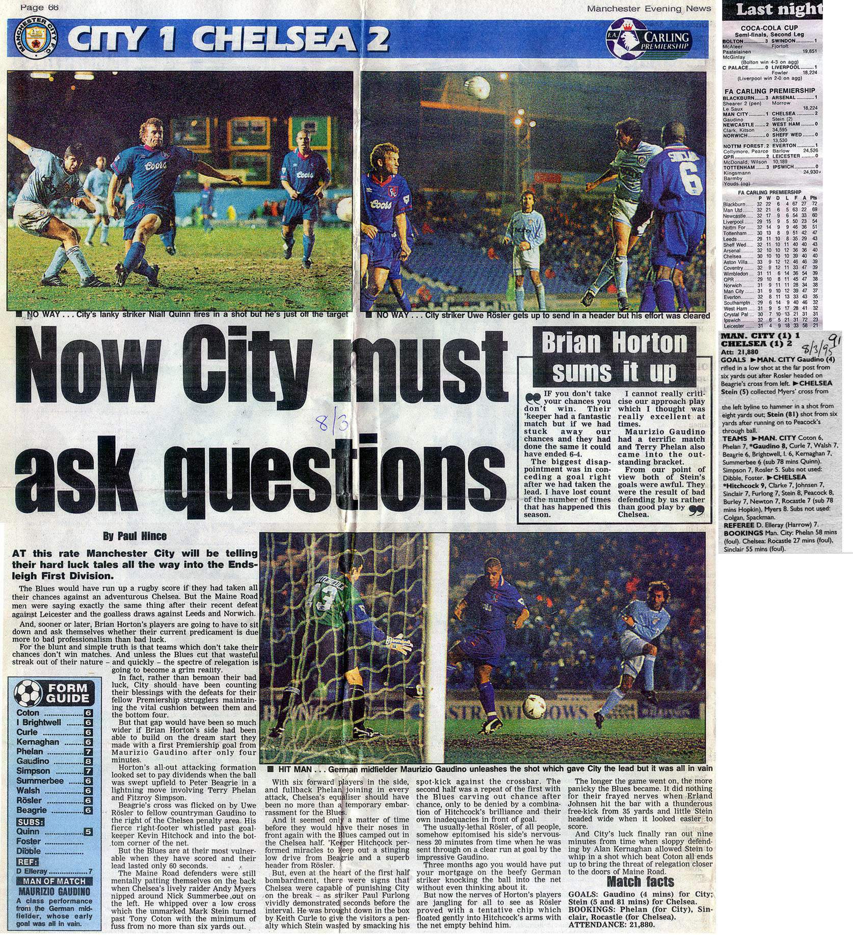 Tony Coton, Michel Vonk, Keith Curle, Steve Lomas, Nicky Summerbee, Ian Brightwell, Steve McMahon (Niall Quinn 67), Garry Flitcroft, Peter Beagrie, Paul Walsh, Uwe Rosler |