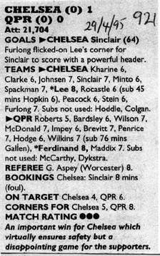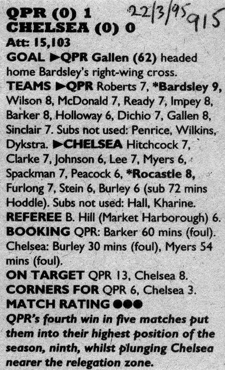 Chelsea (0) 1 Queens Park Rangers (0) 0