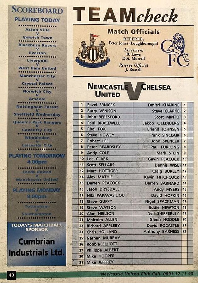 Mike Hooper, Marc Hottiger, Philippe Albert, Darren Peacock, John Beresford, Barry Venison, Scott Sellars, Rob Lee, Ruel Fox, Andy Cole, Steve Watson |