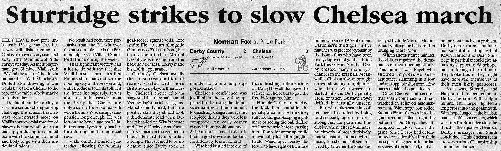 Chelsea (1) 2 Derby County (0) 1