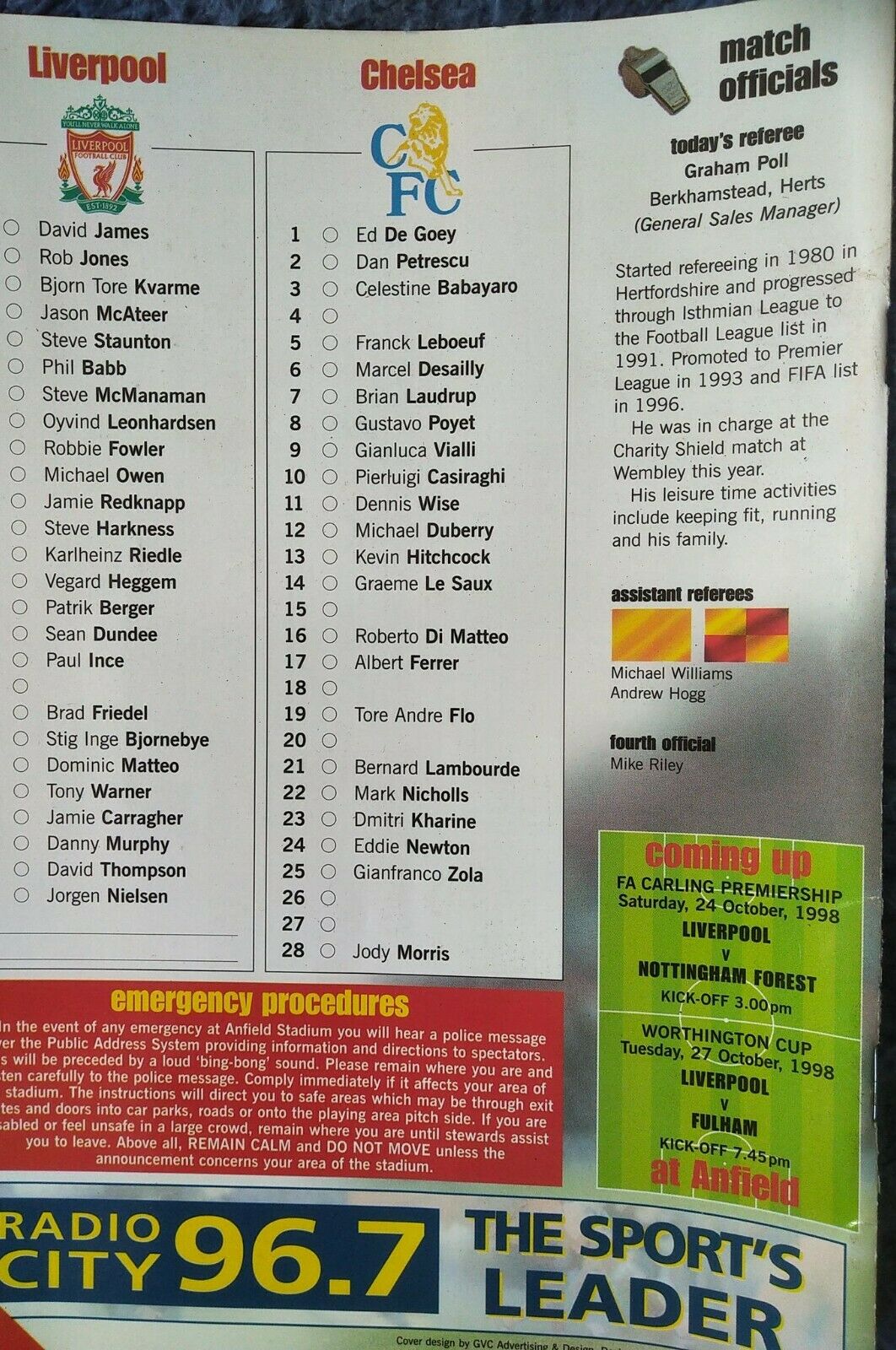 12 Michael Duberry, 22 Mark Nicholls, 23 Dmitri Kharine |