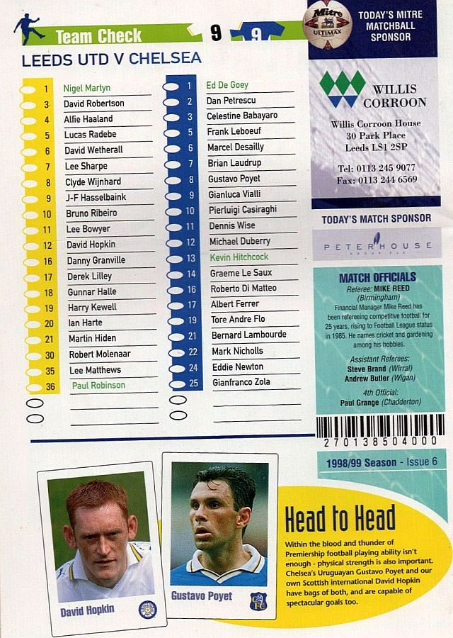 12 Michael Duberry, 13 Kevin Hitchcock |
