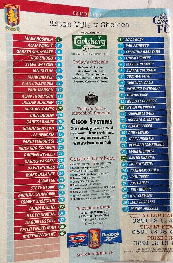 Babayaro 40, Vialli 68 |