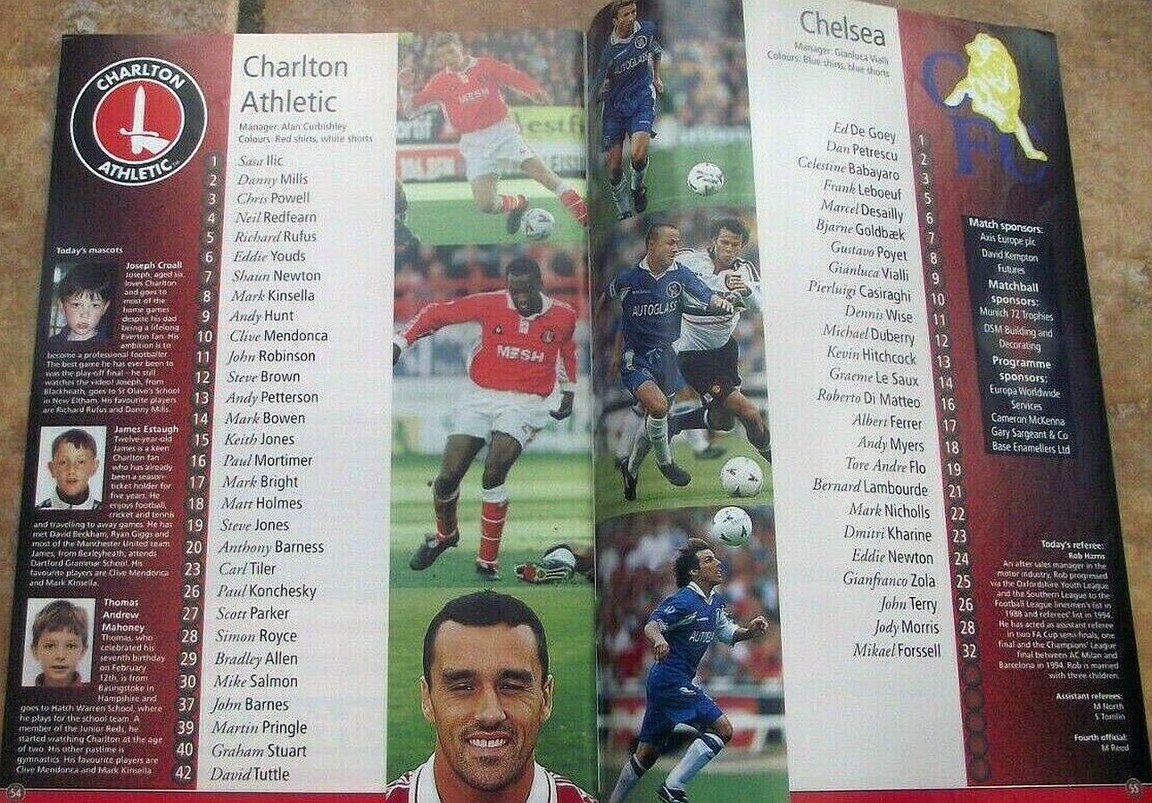 23 Dmitri Kharine, 3 Celestine Babayaro ( 2 Dan Petrescu 46), 8 Gus Poyet, 9 Gianluca Vialli, 11 Dennis Wise, 12 Michael Duberry (26 John Terry 57), 14 Graeme Le Saux, 16 Roberto DiMatteo (24 Eddie Newton 76), 17 Albert Ferrer, 19 Tore Andre Flo, 21 Bernard Lambourde |