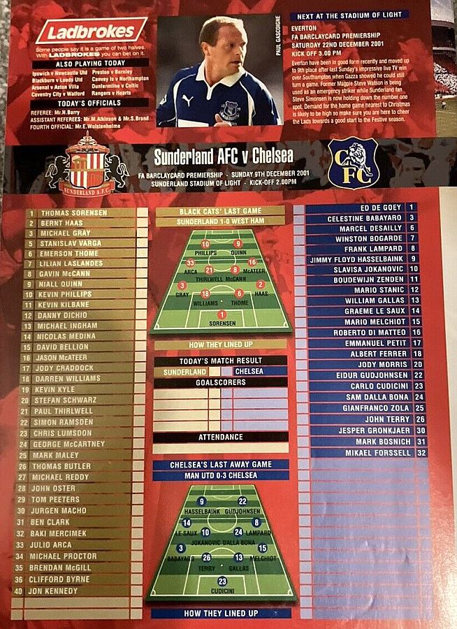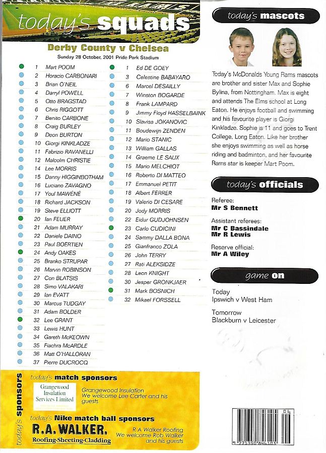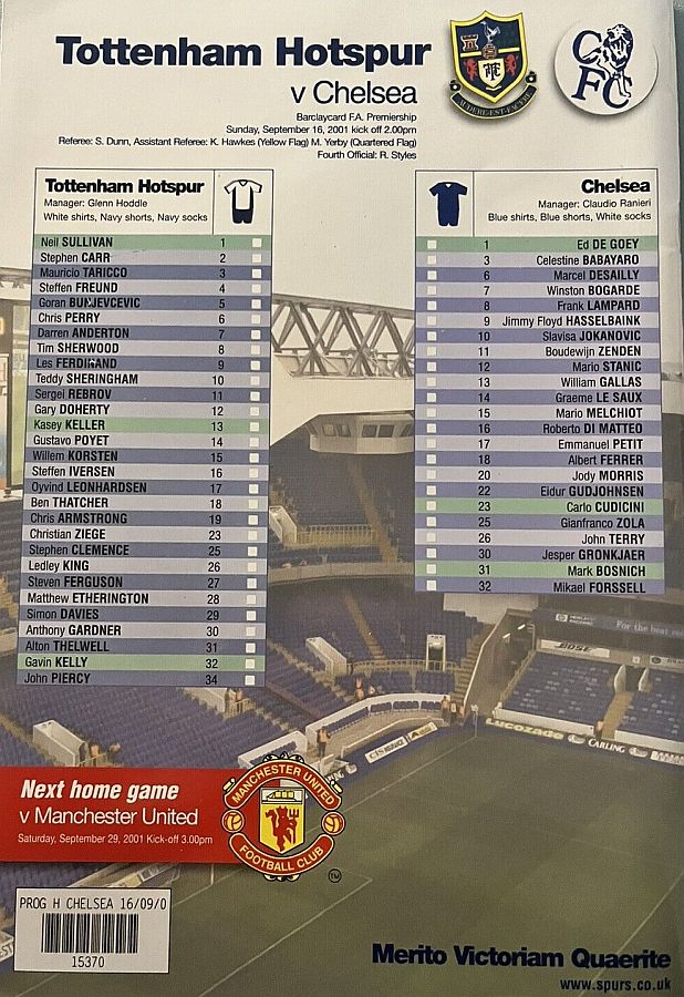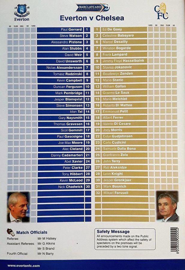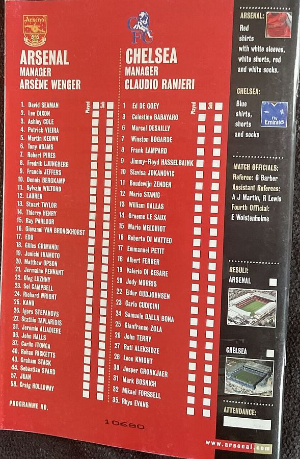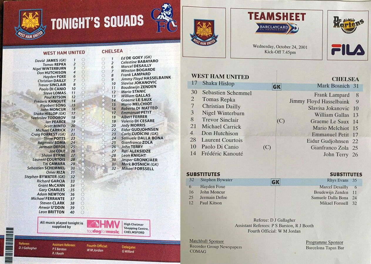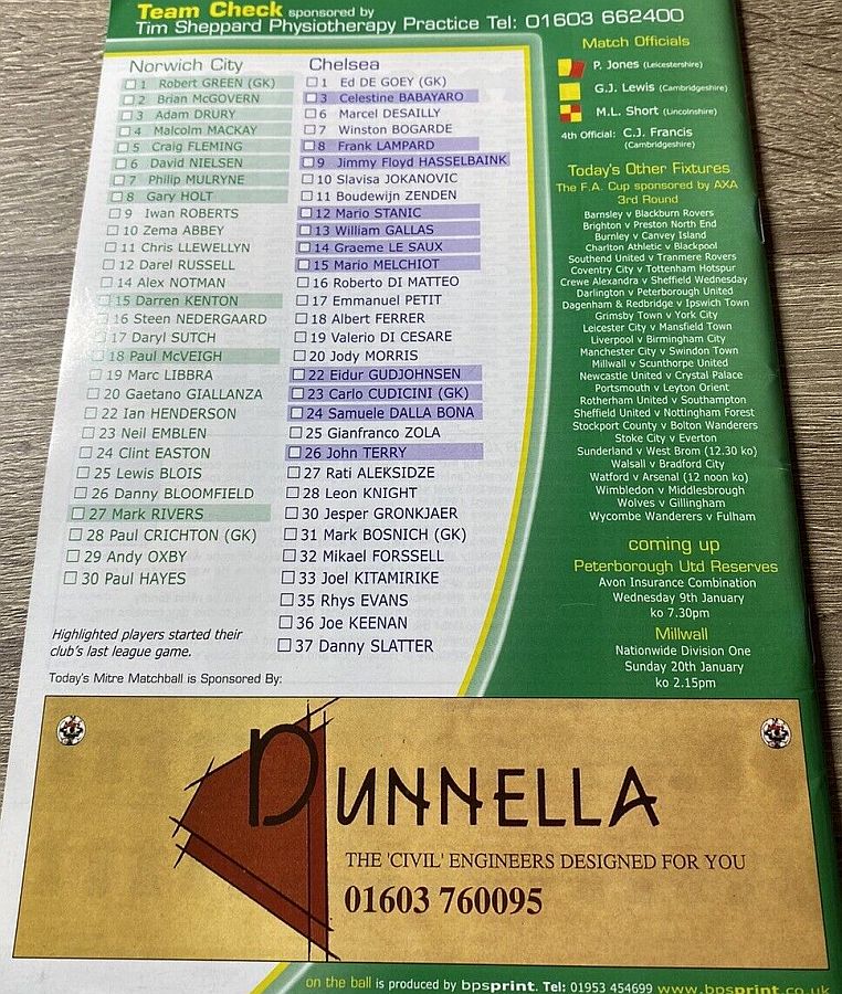 23 Carlo Cudicini, 8 Frank Lampard, 11 Bollo Zenden (24 Sam Dalla Bona 45), 13 William Gallas, 14 Graeme Le Saux (22 Eidur Gudjohnsen 45), 15 Mario Melchiot, 17 Emmanuel Petit, 25 Gianfranco Zola, 26 John Terry, 30 Jesper Gronkjaer (29 Robert Huth 45), 39 Carlton Cole |