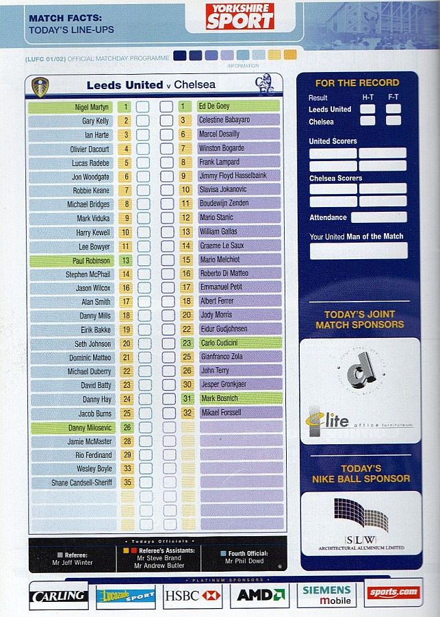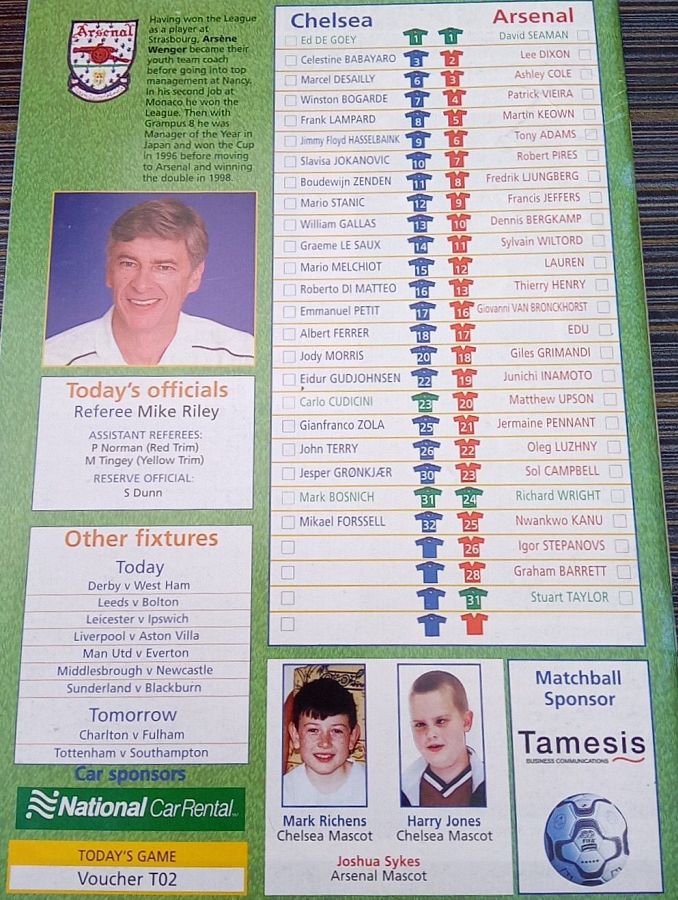 1 Eduard De Goey, 8 Frank Lampard, 10 Slavisa Jokanovic, 11 Bollo Zenden, 13 William Gallas, 14 Graeme Le Saux, 15 Mario Melchiot, 17 Emmanuel Petit (20 Jody Morris 30), 22 Eidur Gudjohnsen, 25 Gianfranco Zola, 26 John Terry |
