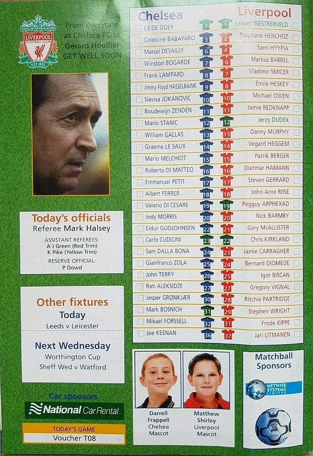 1 Eduard De Goey, 6 Marcel Desailly, 8 Frank Lampard, 9 Jimmy Floyd Hasselbaink, 11 Bollo Zenden (15 Mario Melchiot 90), 13 William Gallas, 14 Graeme Le Saux, 17 Emmanuel Petit, 25 Gianfranco Zola, 26 John Terry, 30 Jesper Gronkjaer (12 Mario Stanic 83) |