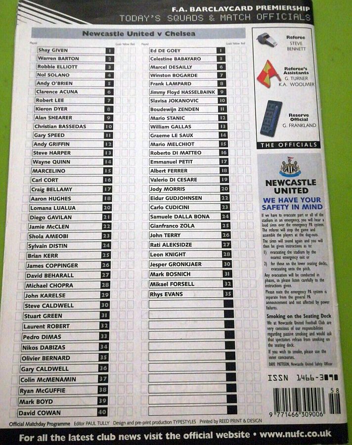 Shay Given, Warren Barton, Robbie Elliott, Nikos Dabizas, Aaron Hughes, Rob Lee, Clarence Acuna (Andy O'Brien 82), Christian Bassedas (Andy Griffin 84), Laurent Robert, Shola Ameobi (Lomano Lua-Lua 71), Craig Bellamy |