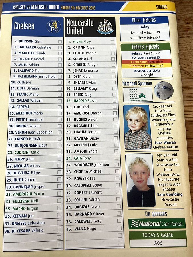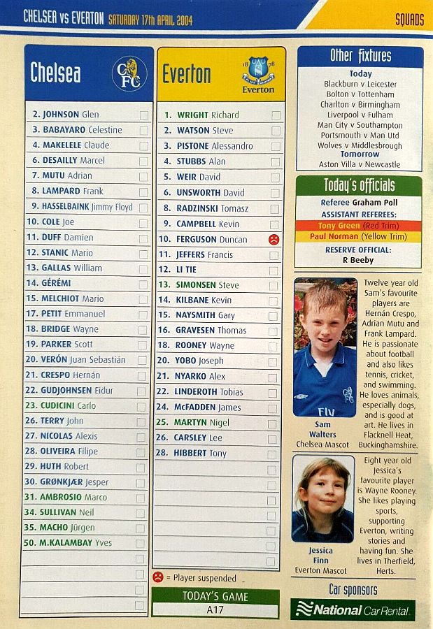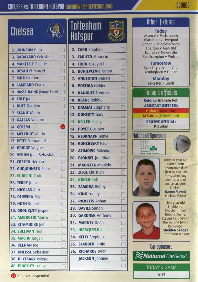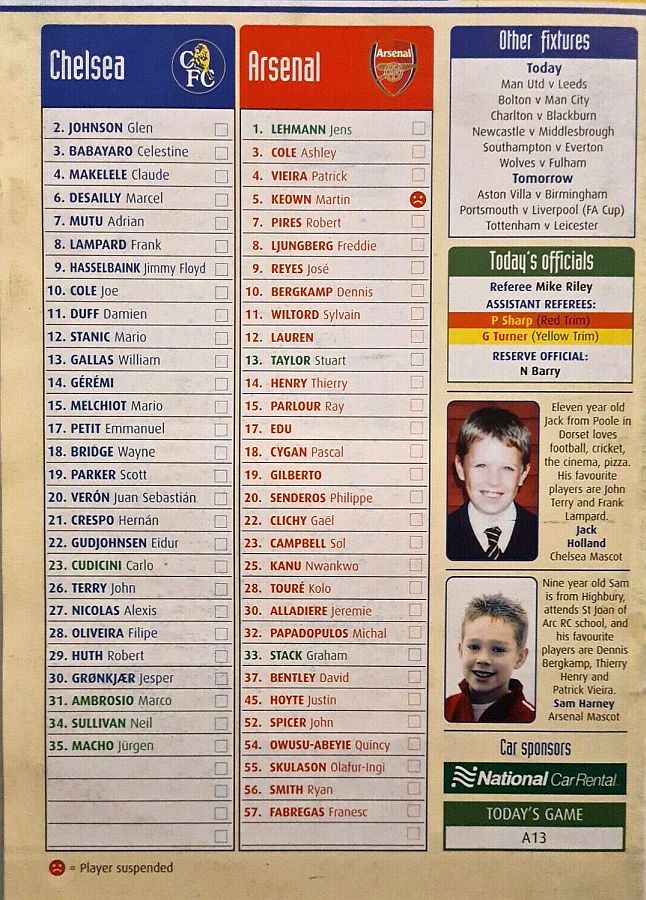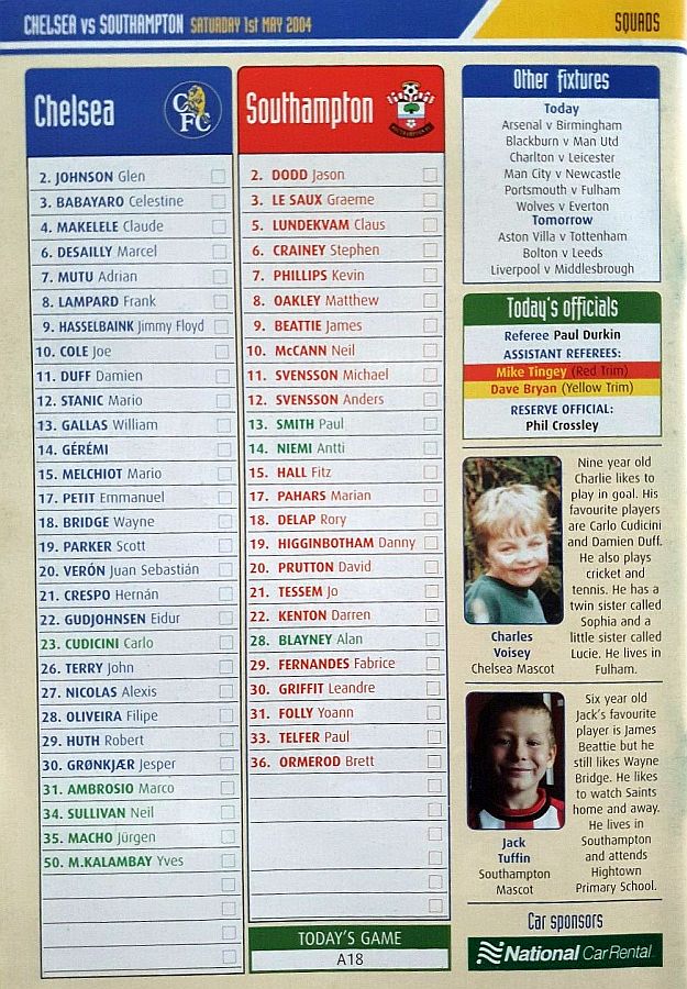 34 Neil Sullivan, 7 Adrian Mutu, 10 Joe Cole, 14 Geremi |