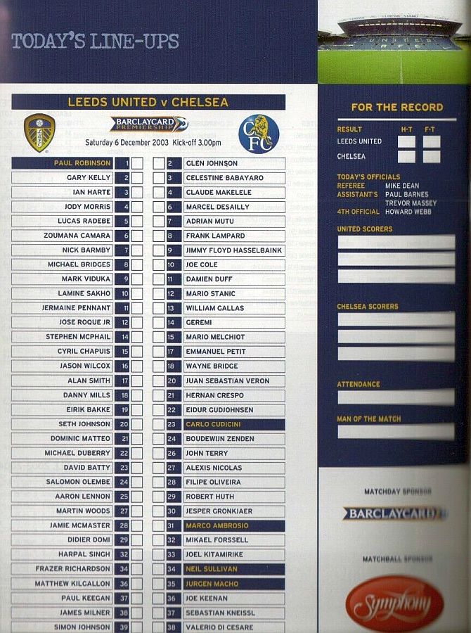 34 Neil Sullivan, 21 Hernan Crespo |