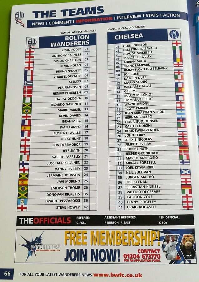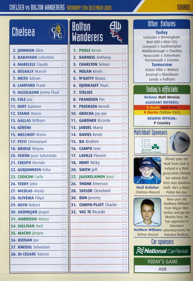 22 Eidur Gudjohnsen, 34 Neil Sullivan |