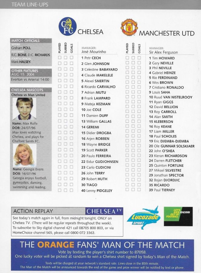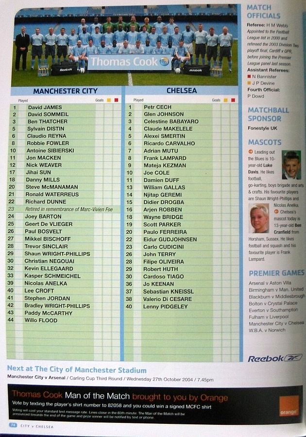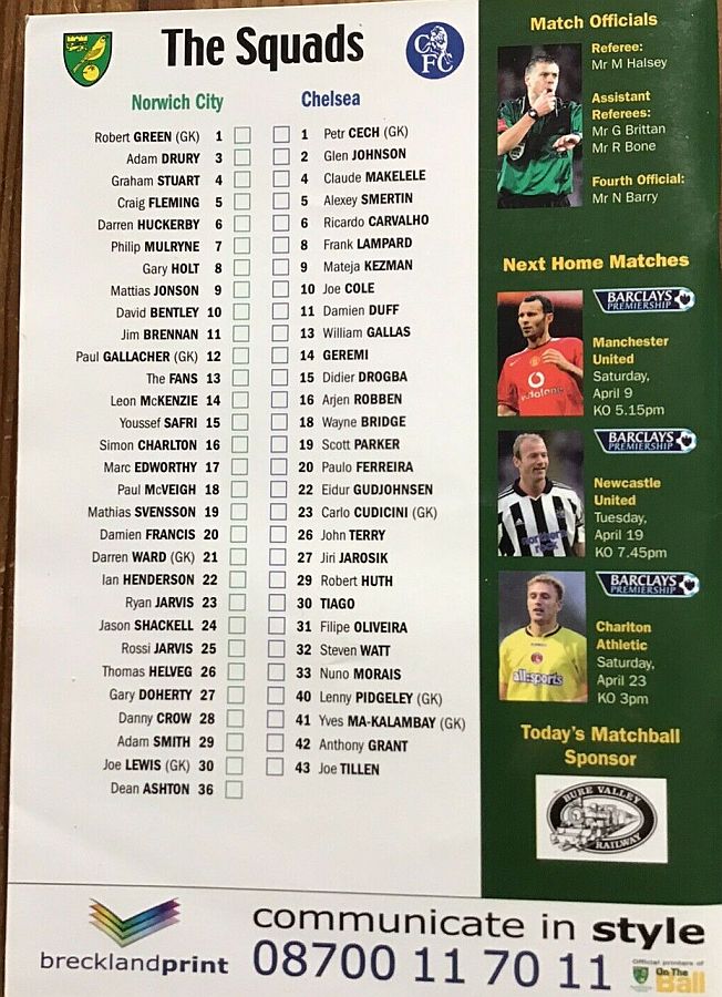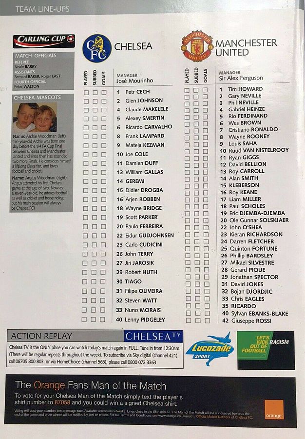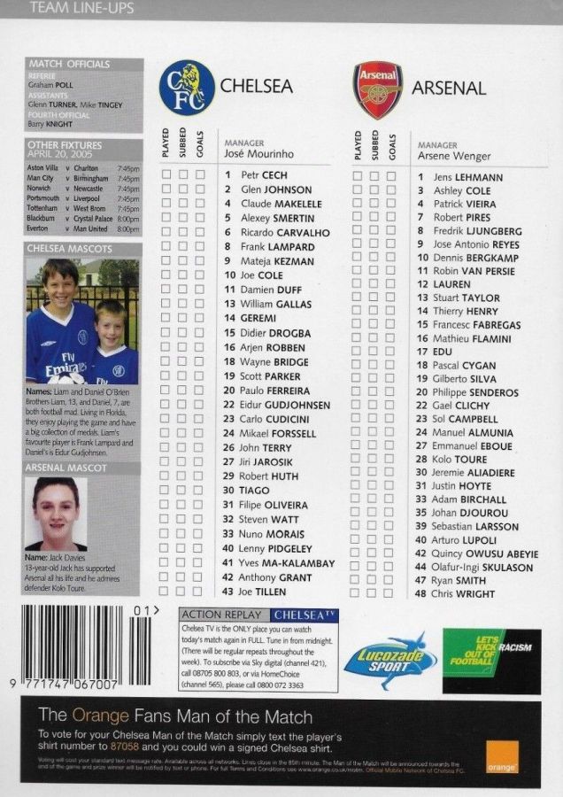 1 Petr Cech, 42 Anthony Grant |