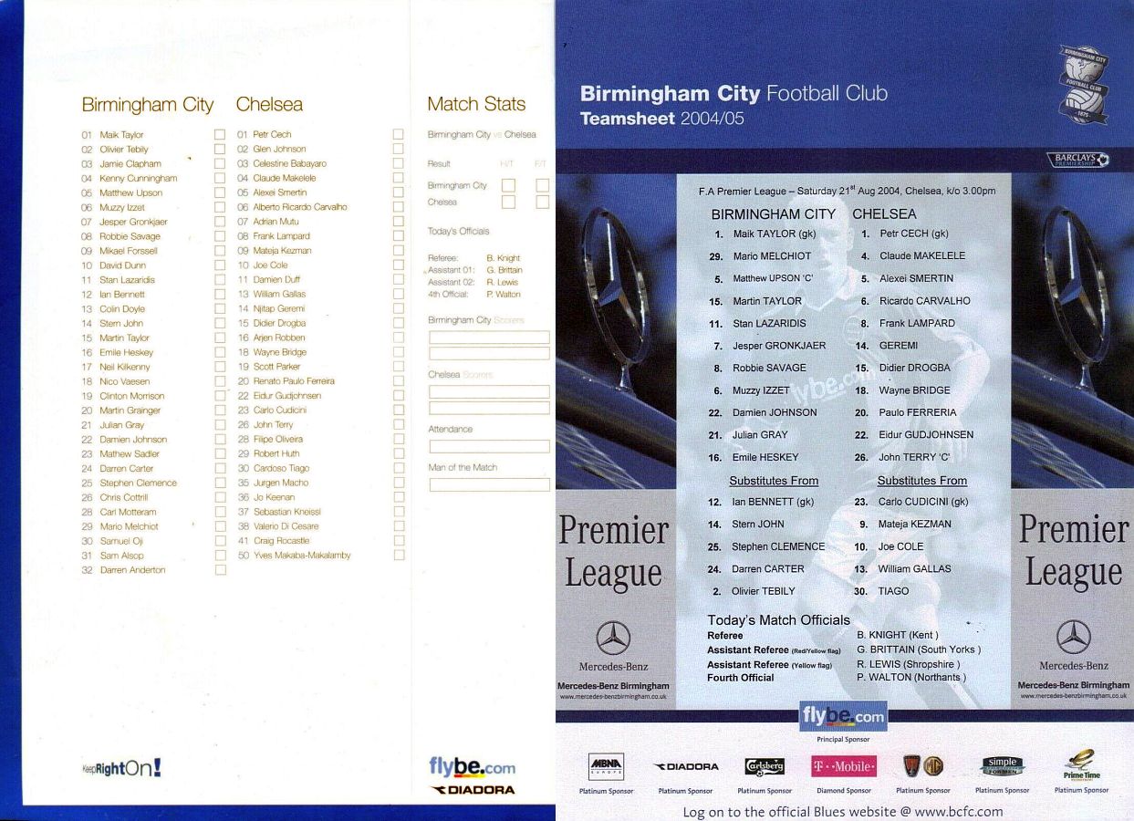 1 Petr Cech, 2 Glen Johnson, 4 Claude Makelele, 6 Ricardo Carvalho, 8 Frank Lampard, 10 Joe Cole (16 Arjen Robben 45), 11 Damien Duff, 15 Didier Drogba (30 Tiago 74), 22 Eidur Gudjohnsen, 26 John Terry, 29 Robert Huth (27 Jiri Jarosik 45) |