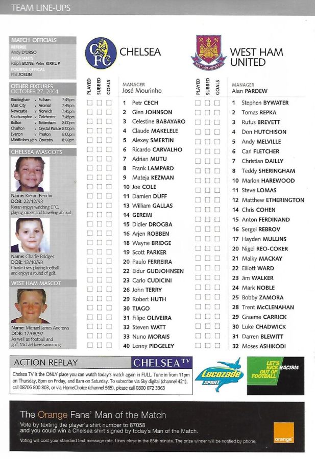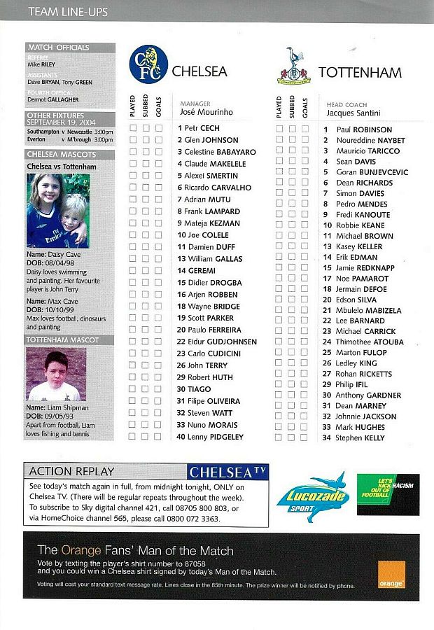 40 Lenny Pidgeley, 6 Ricardo Carvalho, 7 Adrian Mutu, 19 Scott Parker |