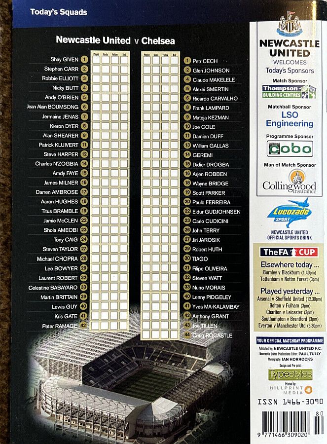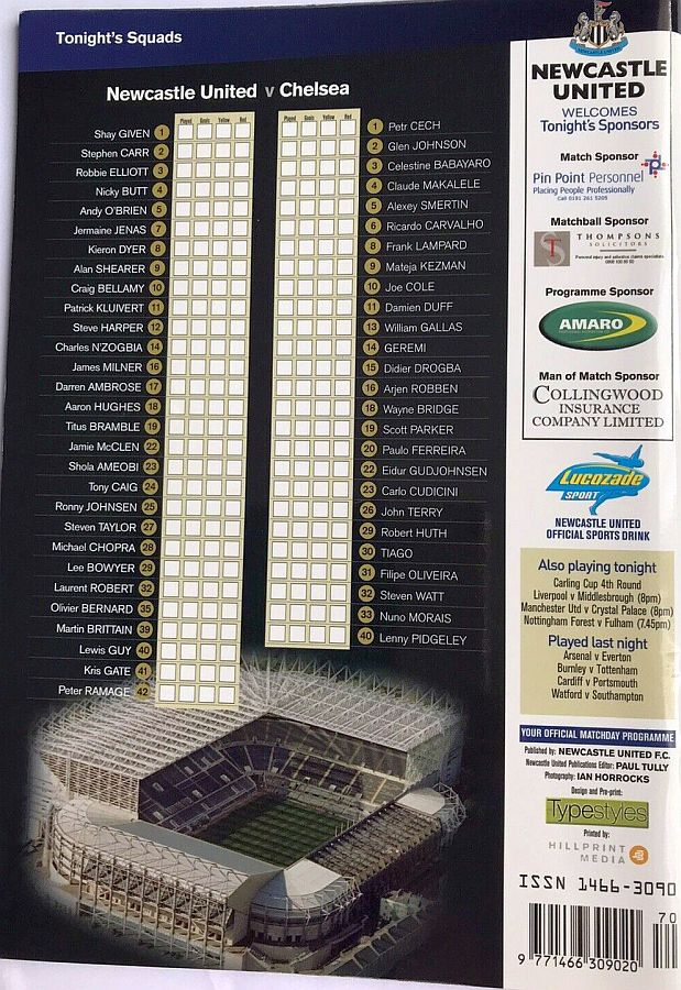 Shay Given, Stephen Carr (Steven Taylor 46), Jean-Alain Boumsong, Titus Bramble, Celestine Babayaro, Jermaine Jenas, Darren Ambrose, Charles N'Zogbia, James Milner, Alan Shearer, Patrick Kluivert (Michael Chopra 76) |