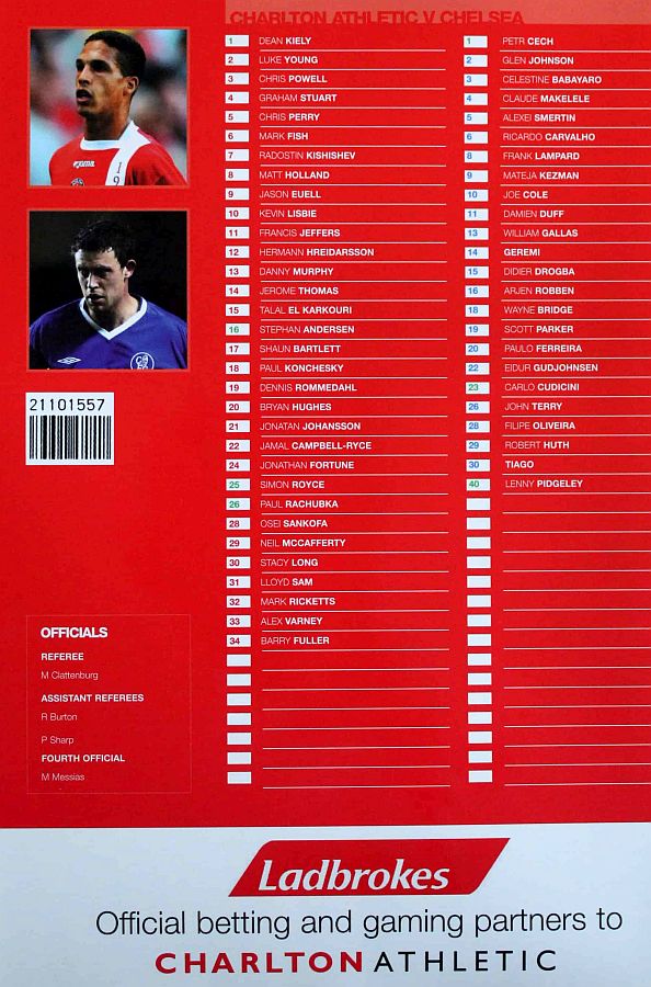 13 William Gallas, 23 Carlo Cudicini |