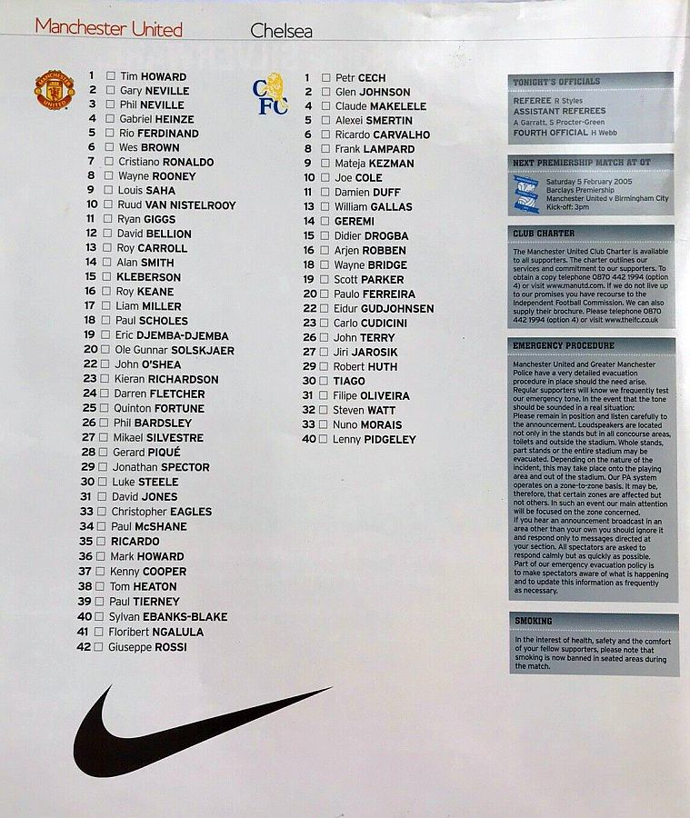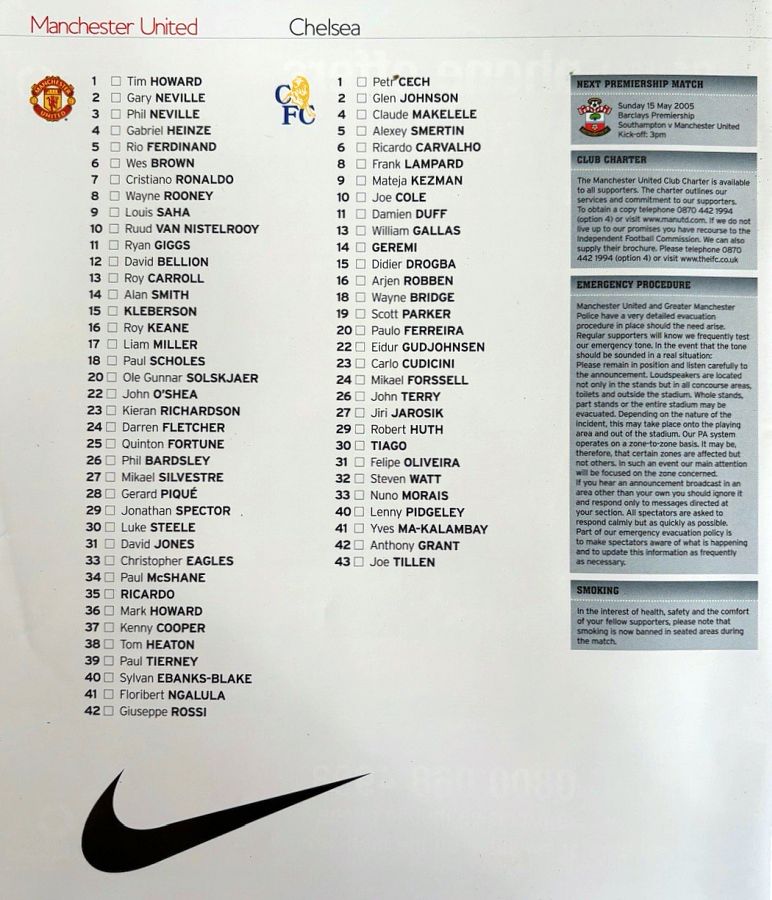 Roy Carroll, Gary Neville, Wes Brown, Rio Ferdinand, Mikael Silvestre, Darren Fletcher (Louis Saha 72), Roy Keane, Paul Scholes, Cristiano Ronaldo, Wayne Rooney, Ruud van Nistelrooy |