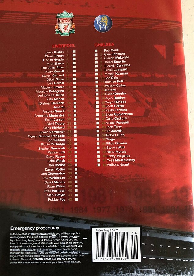 Jerzy Dudek, Steve Finnan, Sami Hyypia, Djimi Traore, Jamie Carragher, John Arne Riise, Steven Gerrard, Xabi Alonso, Igor Biscan (Harry Kewell 86), Luis Garcia (Vladimir Smicer 90), Milan Baros (Djibril Cisse 65) |