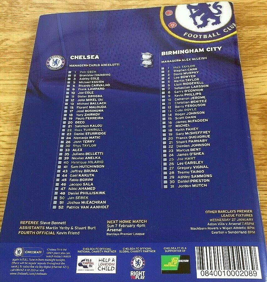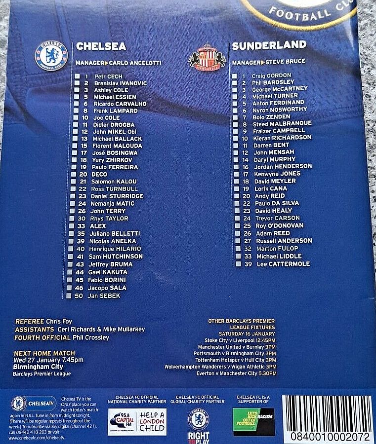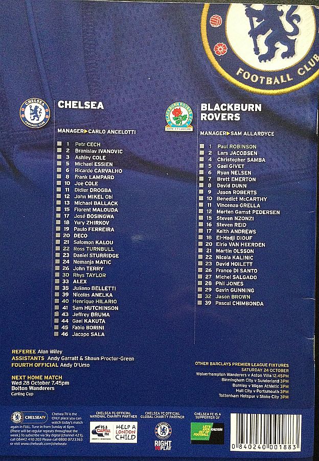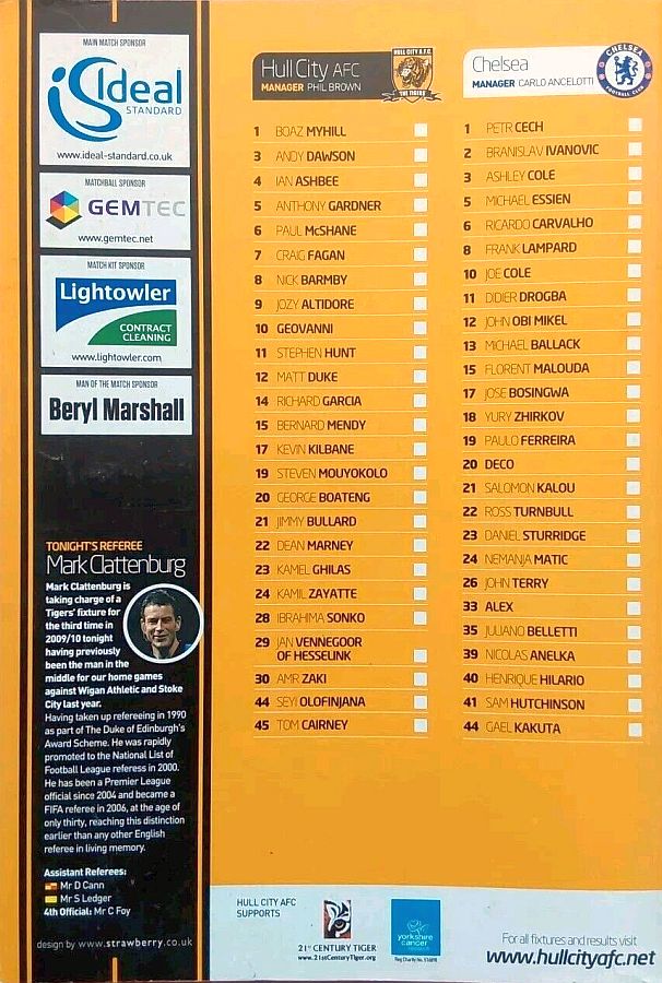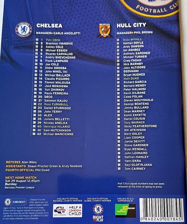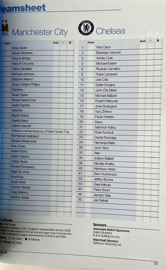 1 Petr Cech, 3 Ashley Cole, 6 Ricardo Carvalho, 8 Frank Lampard (20 Anderson Deco 81), 11 Didier Drogba, 12 Mikel Obi, 13 Michael Ballack, 15 Florent Malouda, 17 Jose Bosingwa (41 Sam Hutchinson 86), 26 John Terry, 39 Nicolas Anelka |