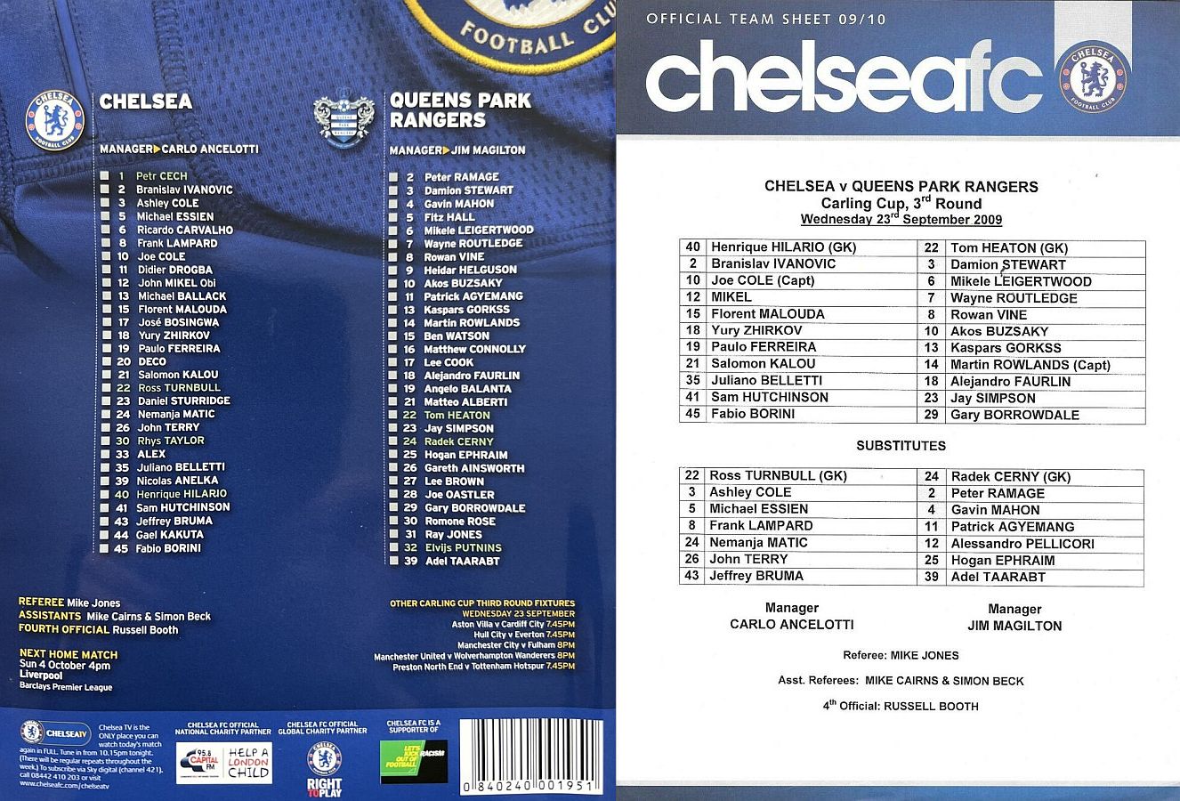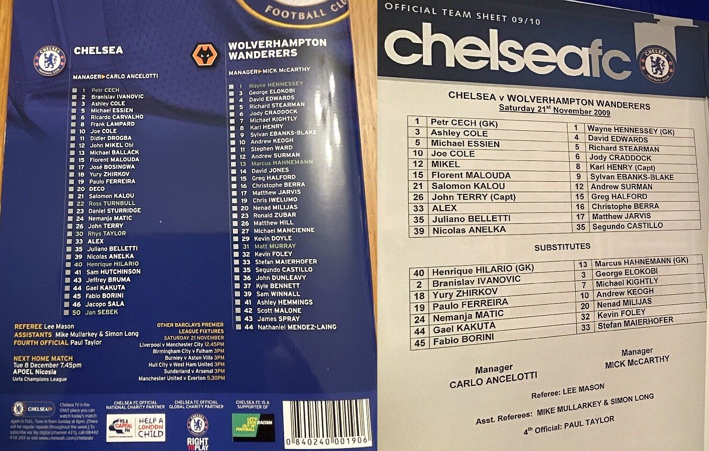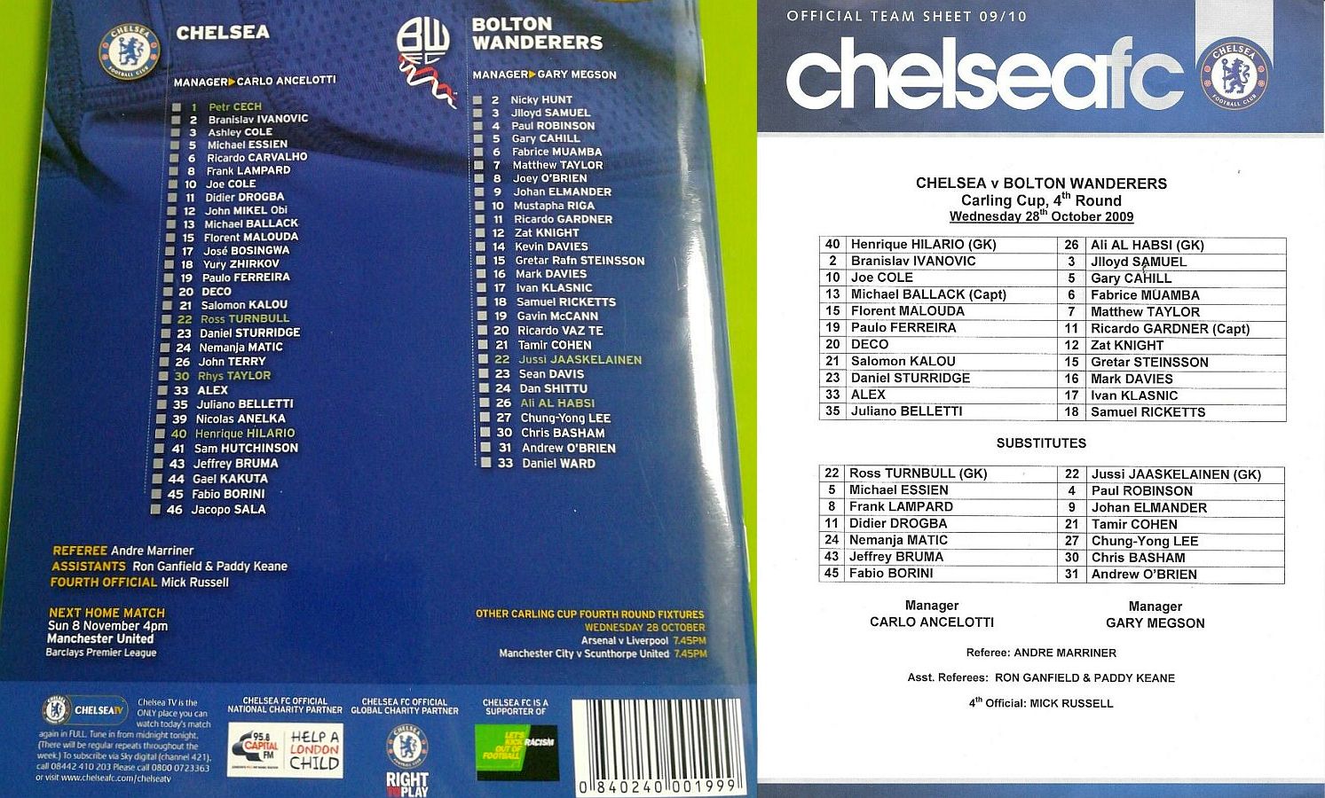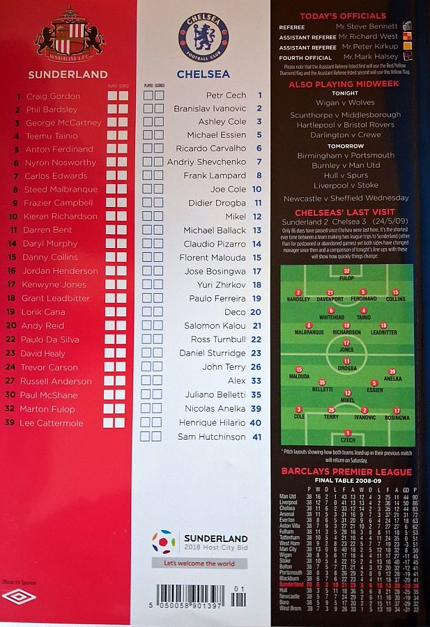 1 Petr Cech, 3 Ashley Cole, 6 Ricardo Carvalho, 8 Frank Lampard (20 Anderson Deco 81), 11 Didier Drogba, 12 Mikel Obi, 13 Michael Ballack, 15 Florent Malouda, 17 Jose Bosingwa (41 Sam Hutchinson 86), 26 John Terry, 39 Nicolas Anelka |