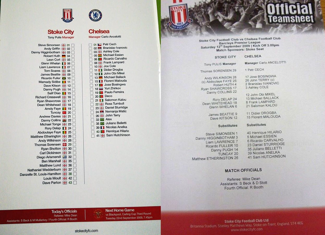Thomas Sorensen (Asmir Begovic 35), Robert Huth, Abdoulaye Faye (Ryan Shawcross 7), Danny Higginbotham, Danny Collins, Matthew Etherington, Dean Whitehead, Glenn Whelan, Rory Delap, Dave Kitson (Tuncay Sanli 58), Ricardo Fuller |