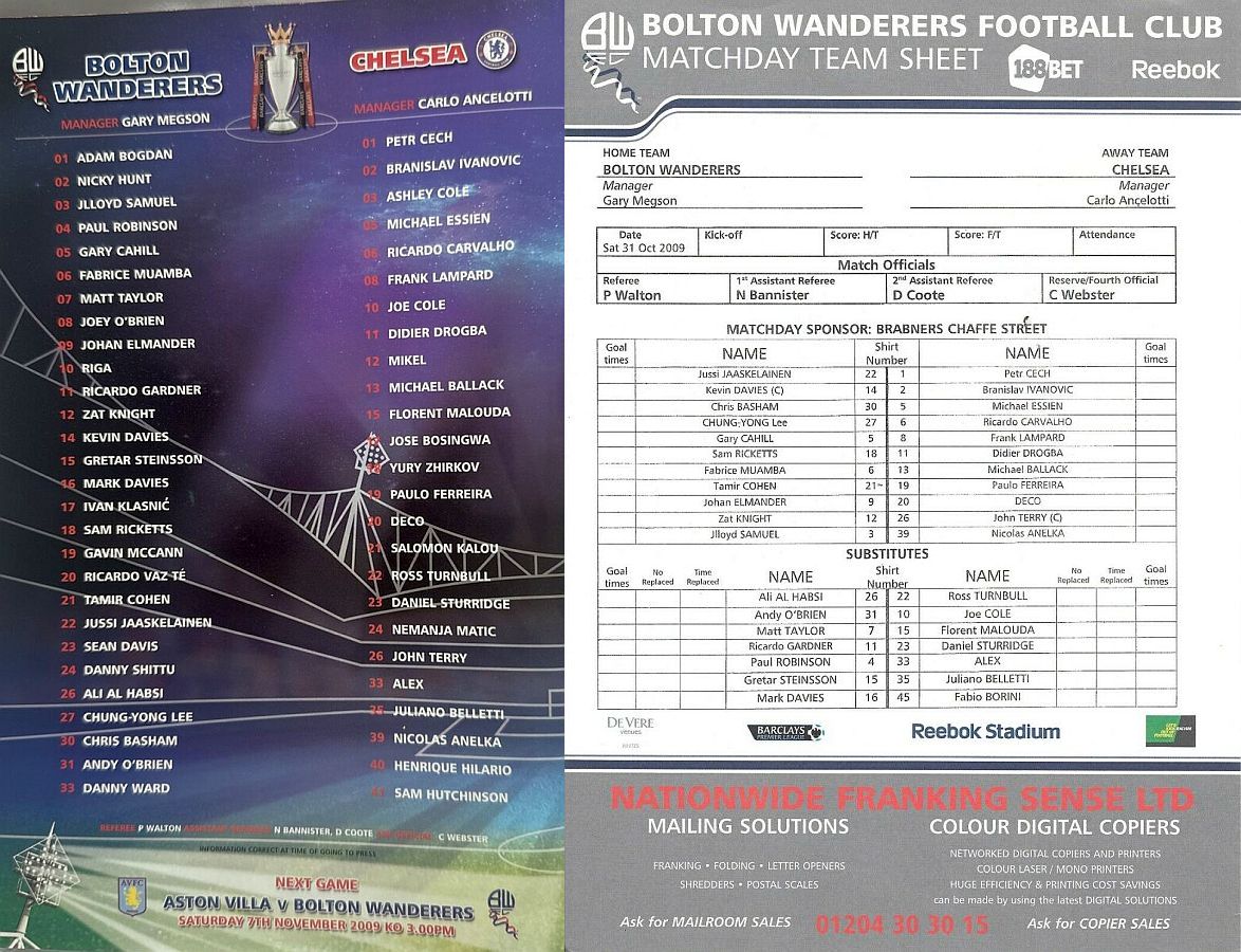 Chelsea (1) 1 Bolton Wanderers (0) 0
