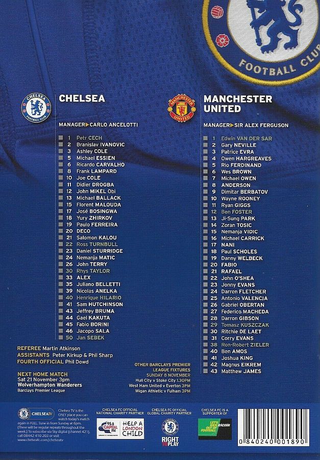 1 Petr Cech, 8 Frank Lampard, 11 Didier Drogba, 12 Mikel Obi, 13 Michael Ballack, 18 Yuri Zhirkov, 19 Paulo Ferreira, 21 Salomon Kalou (10 Joe Cole 77), 26 John Terry, 33 Alex (15 Florent Malouda 66), 39 Nicolas Anelka |