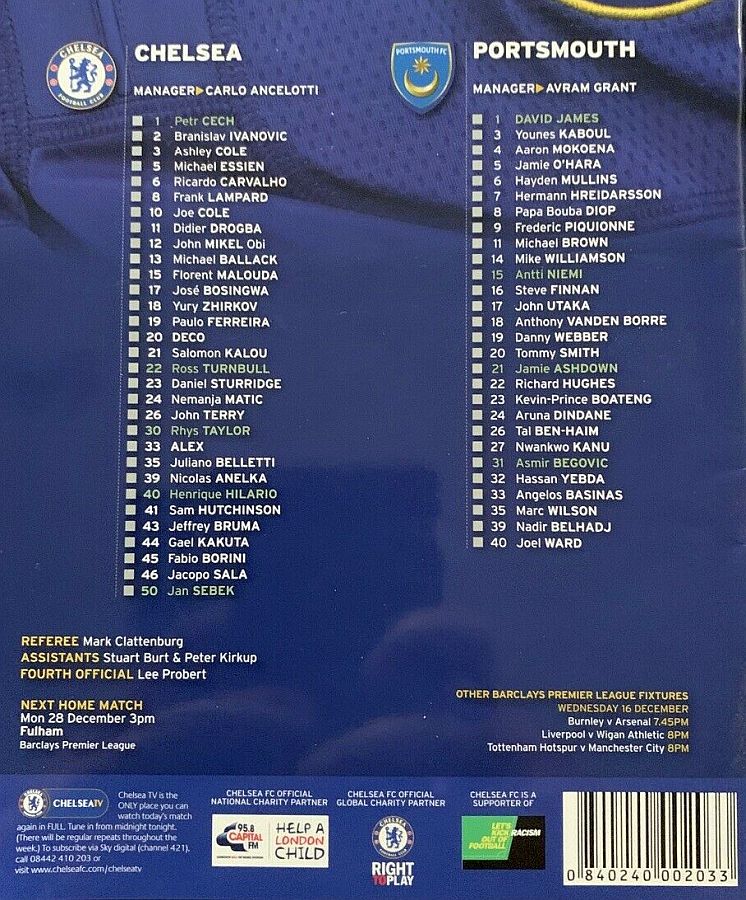 Zhirkov 32, Deco 39, Ferreira 48 |