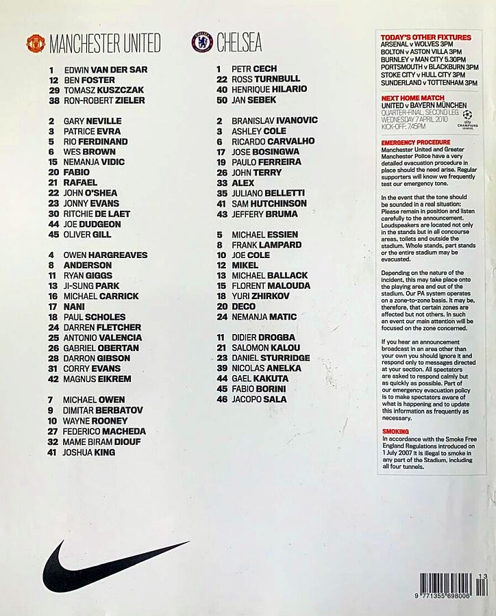 Paul Scholes 34, Gary Neville 44, Darren Fletcher 84 |