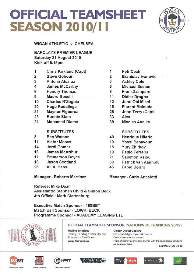 Wigan Athletic (0) 0 Chelsea (1) 6
