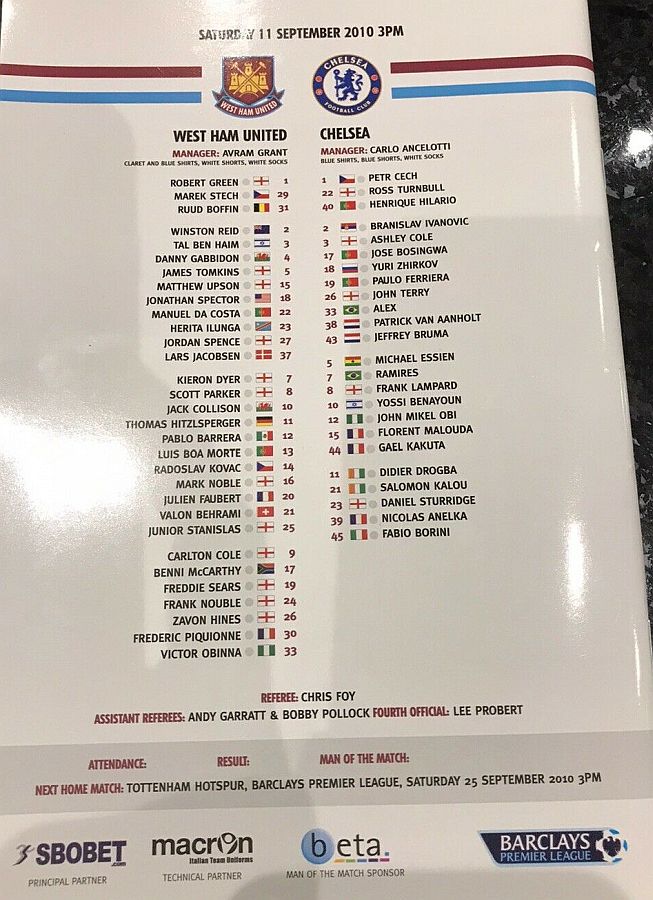 Rob Green, Lars Jacobsen, Tal Ben Haim, Matthew Upson, Herita Ilunga, Scott Parker, Valon Behrami (Frederic Piquionne 72), Mark Noble, Luis Boa Morte (Kieron Dyer 46), Carlton Cole, Victor Obinna |