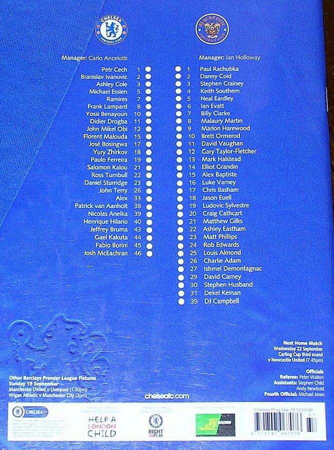 22 Ross Turnbull, 10 Yossi Benayoun, 18 Yuri Zhirkov, 38 Patrick Van Aanholt |