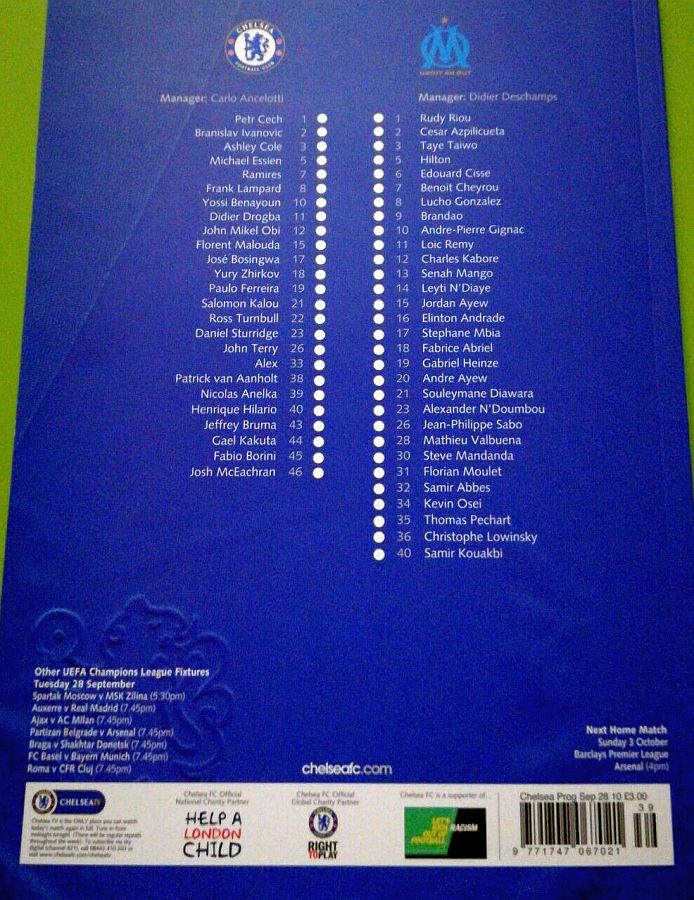 1 Petr Cech, 3 Ashley Cole, 5 Michael Essien, 8 Frank Lampard (10 Yossi Benayoun 64), 11 Didier Drogba (21 Salomon Kalou 70), 12 Mikel Obi, 15 Florent Malouda, 19 Paulo Ferreira ( 2 Branislav Ivanovic 60), 26 John Terry, 33 Alex, 39 Nicolas Anelka |