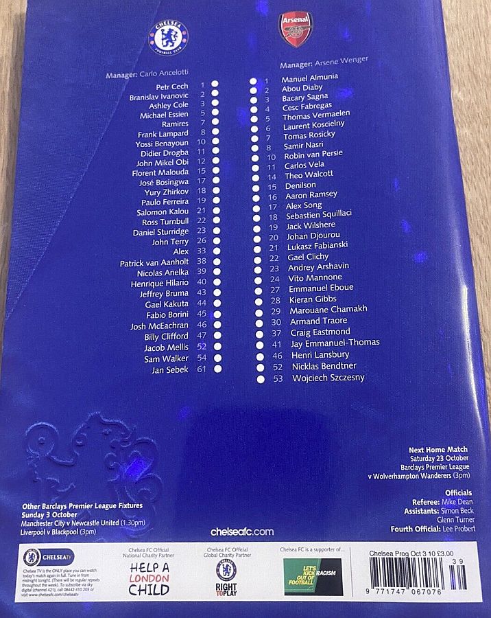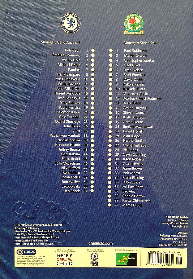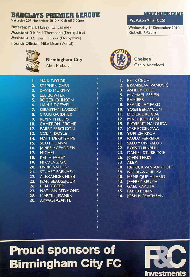 22 Ross Turnbull, 10 Yossi Benayoun, 19 Paulo Ferreira, 39 Nicolas Anelka |