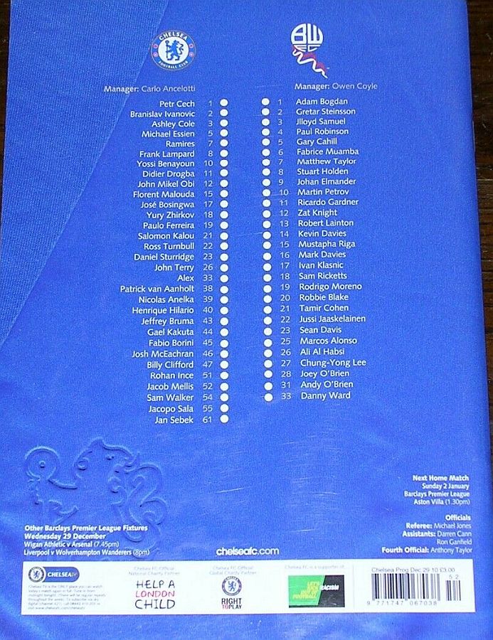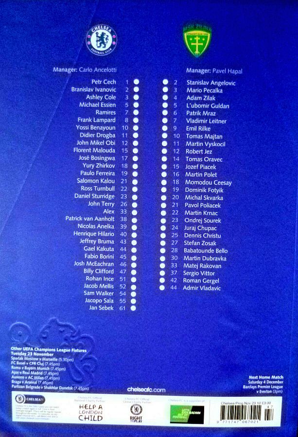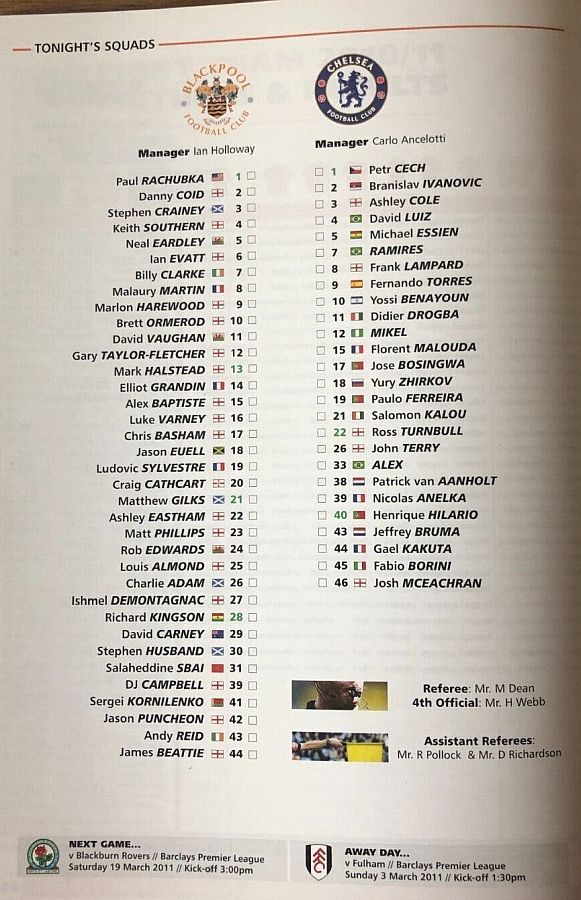22 Ross Turnbull, 10 Yossi Benayoun, 12 Mikel Obi, 18 Yuri Zhirkov |