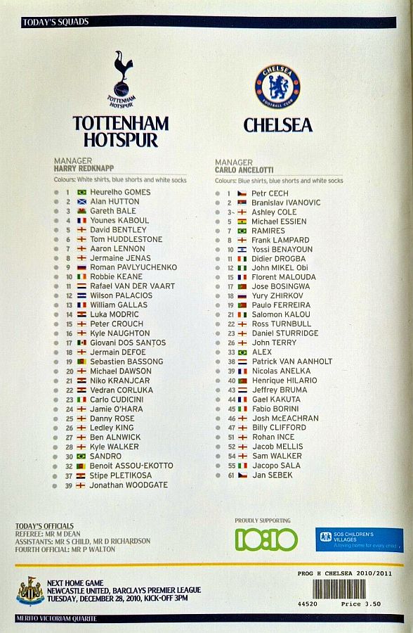 Heurelho Gomes, Younes Kaboul, Michael Dawson, William Gallas, Vedran Corluka (Steven Pienaar 79), Aaron Lennon, Luka Modric, Sandro, Gareth Bale, Rafael van der Vaart (Jermaine Jenas 85), Roman Pavlyuchenko (Jermain Defoe 58) |