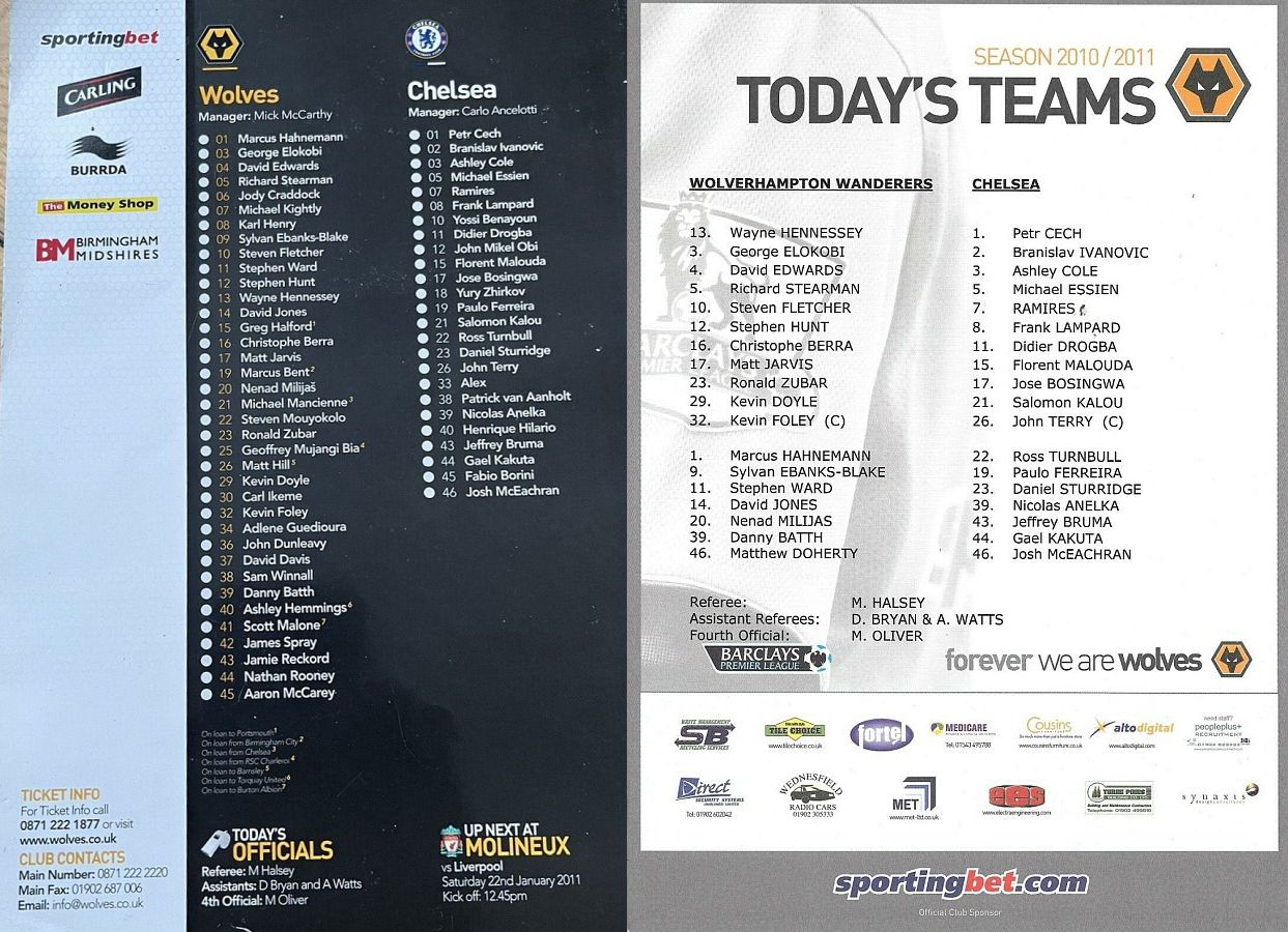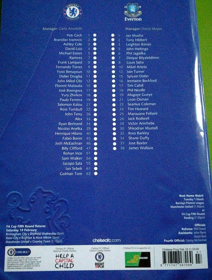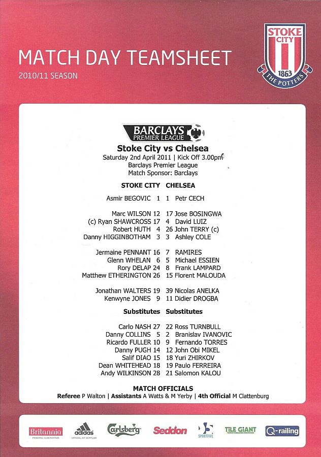22 Ross Turnbull, 4 David Luiz, 18 Yuri Zhirkov, 34 Ryan Bertrand |