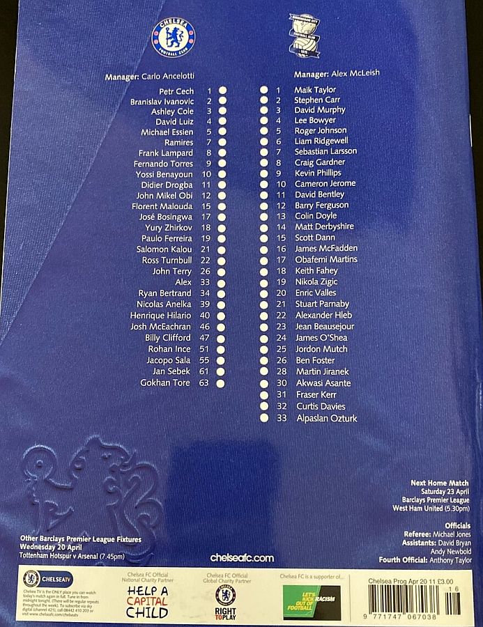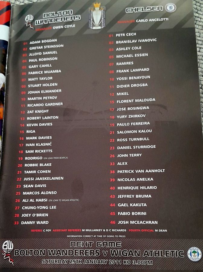 22 Ross Turnbull, 4 David Luiz, 12 Mikel Obi, 19 Paulo Ferreira |