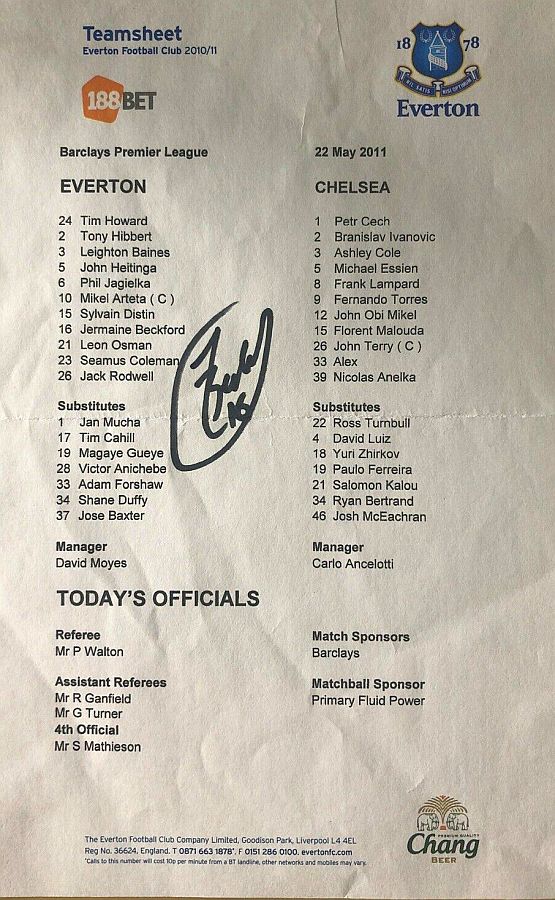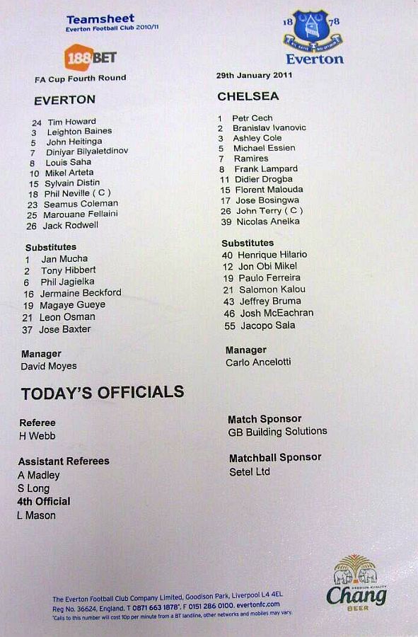 Tim Howard, Tony Hibbert, Phil Jagielka, Sylvain Distin, Leighton Baines, Seamus Coleman, Johnny Heitinga, Mikel Arteta (Tim Cahill 90), Jack Rodwell, Leon Osman, Jermaine Beckford (Victor Anichebe 80) |