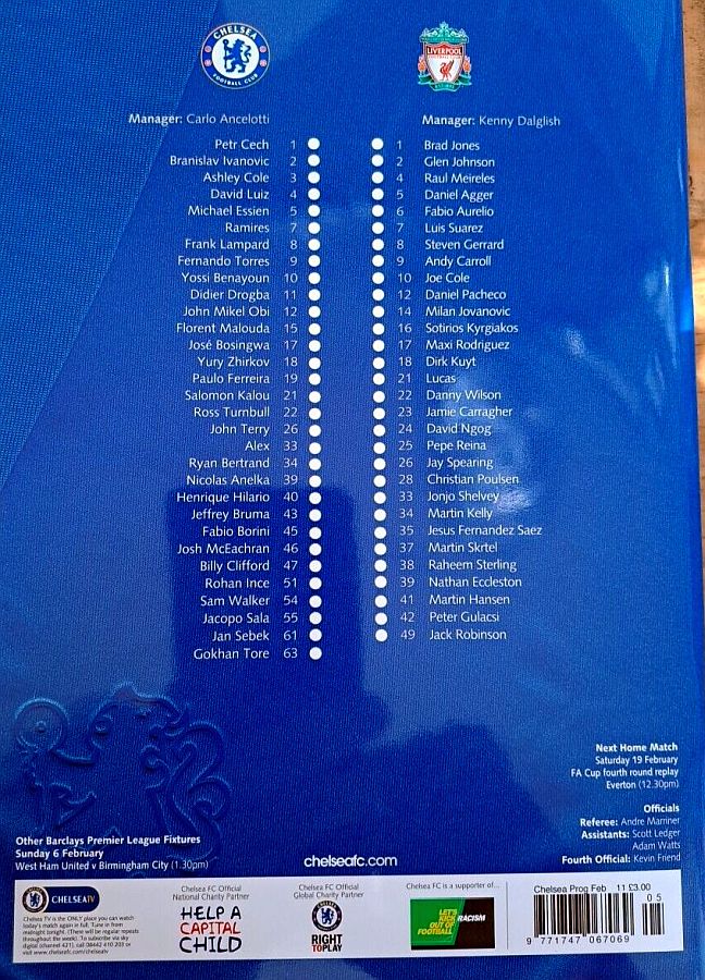 22 Ross Turnbull, 10 Yossi Benayoun, 18 Yuri Zhirkov, 23 Daniel Sturridge |